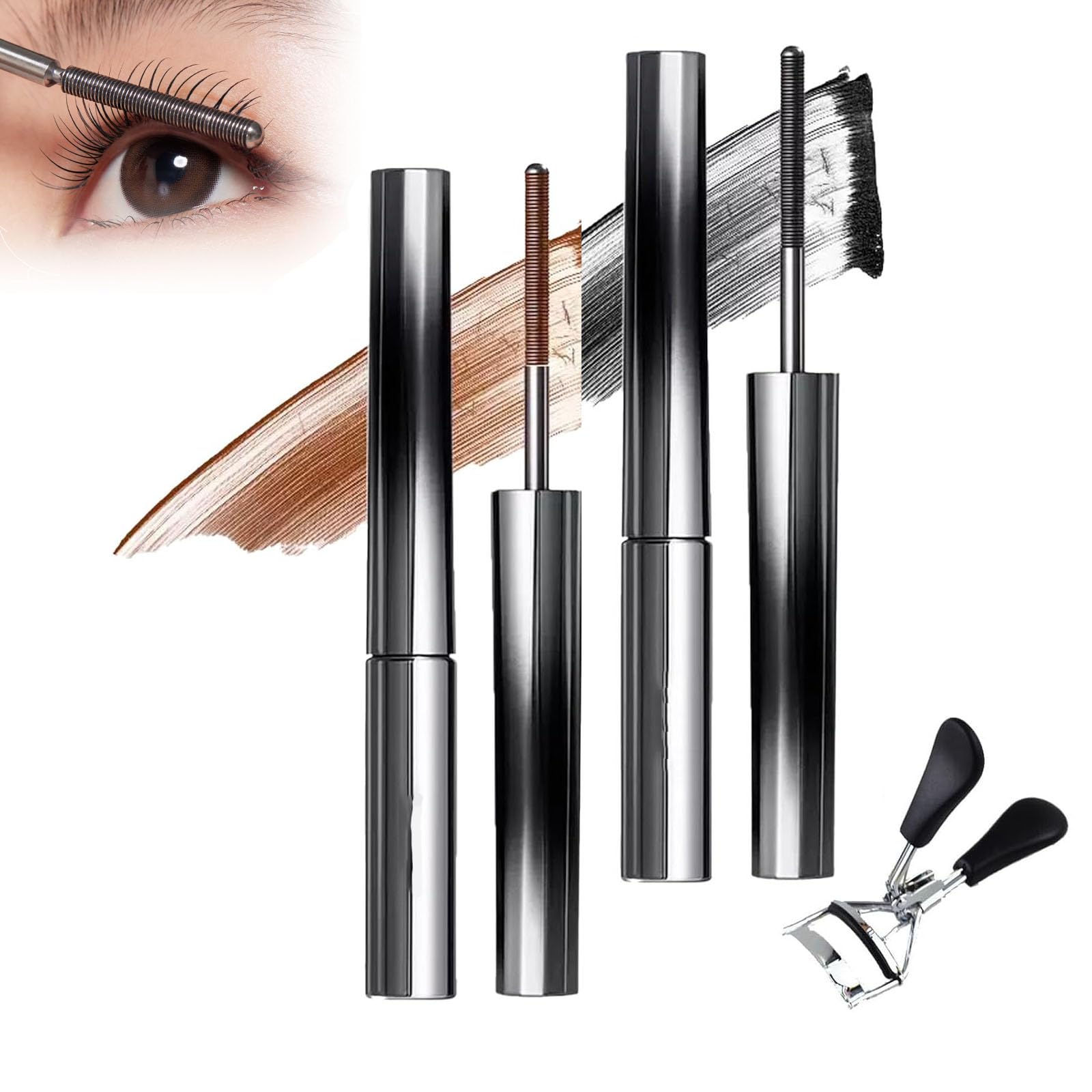 RICOKJRDE Facelove Iron Eye Mascara Facelove Mascara 3D Curler For Long Lasting Eyelashes 2 Pieces BlacK+Brown