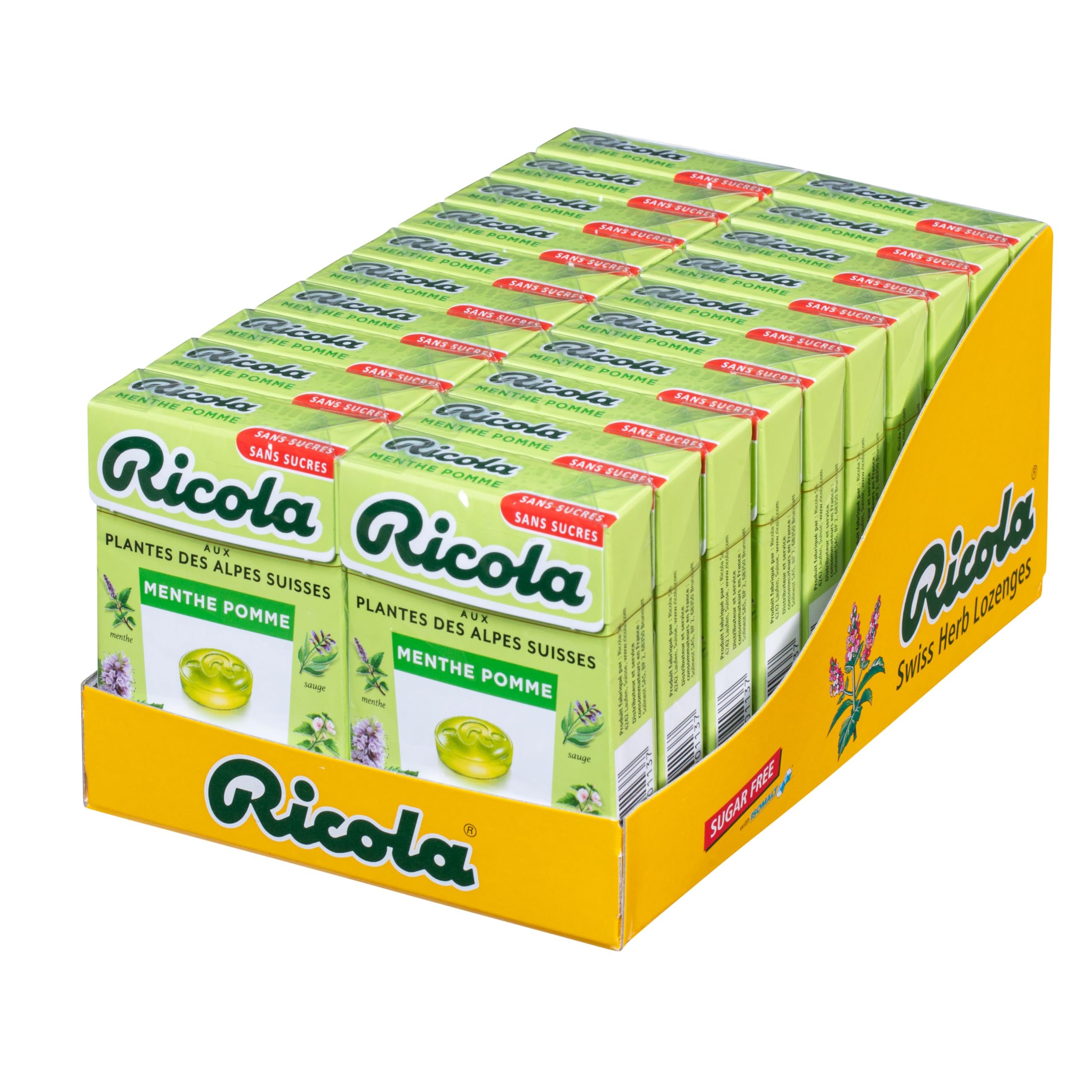 Ricola - 20 Boîtes de 50 g - Bonbons aux Plantes Suisses - Parfum Menthe Pomme - Rafraîchissant - sans Sucres