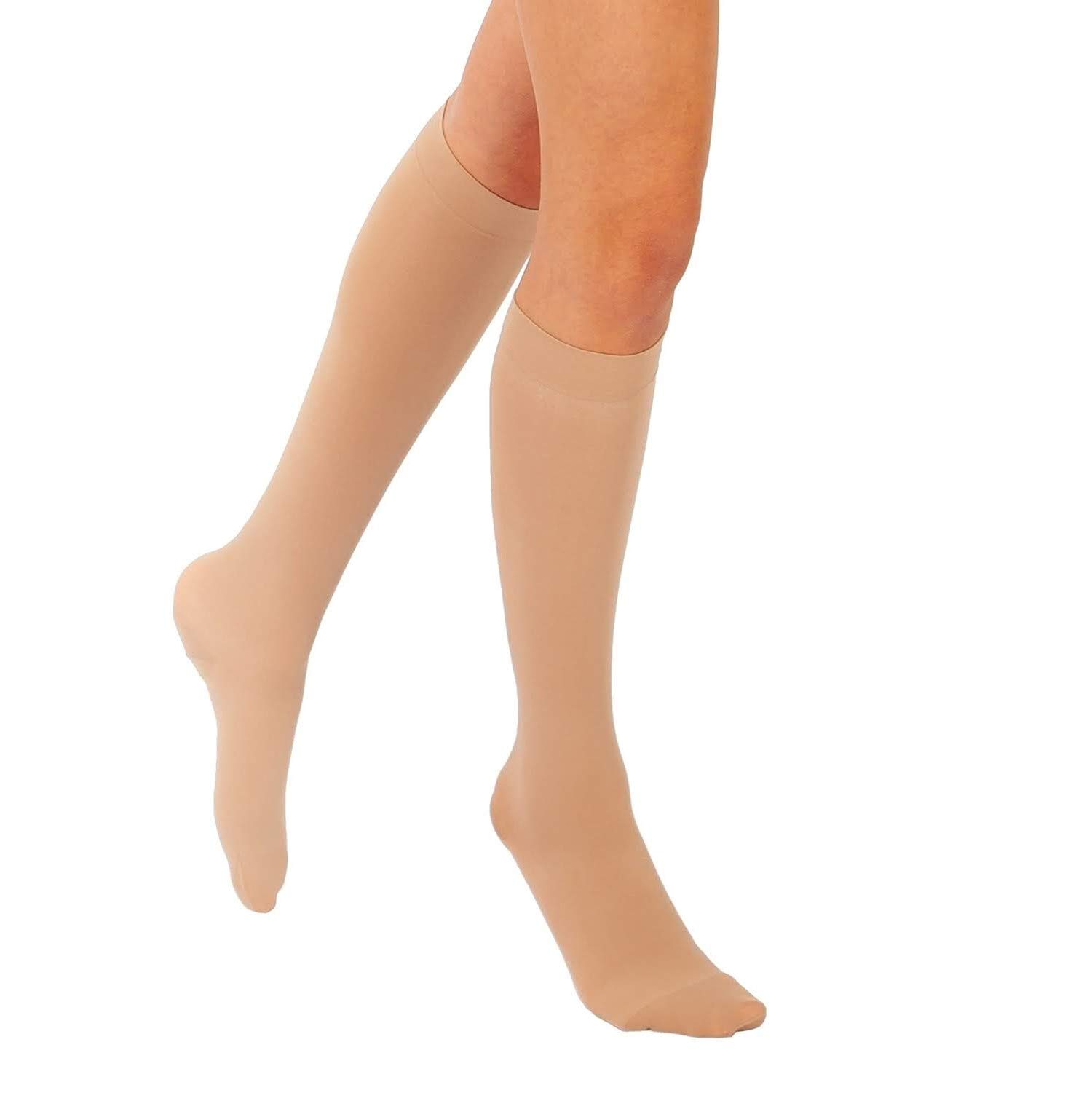 Medical compression class 2 CCL2-23-32 mmHg,KPA: 3.10-4.30 With a graded compression Closed tip Orthoflex heel in Y-shape Antibacterial effect through breathable clima control tissue Optic optics conceals venous problem areas perfect Simple tightening and taking off, uncomplicated handling High dustability and very good skin tolerance Material: 68 polyamides, 32 Elasthan RiemTex compression stockings help very well, heavy and tired, poorly bloodless legs to ""enliven"" again and are at the Prevention and treatment of vein diseases, lymphedema and the associated complications are decisive. In addition, they are of great importance during medical treatment, in the postoperative course and in the diversity therapy, But also to maintain the result that caused by the treatments to reduce the reduction of the anomalies of the lymphatic system Edems was reached. Delay or avoid that the disease (varicose veins, spider rice .) occurs, with a Advanced clinical picture reduce complications such as ulcers and phlebitis. The elastic (graded) compression creates a real pump effect, the venous congestion and vein ulcers ever After the progress of the clinical picture, prevents, prevents or reduced. The elastic compression is also highly recommended to maintain the result, which is Lymphatic drainage was able to achieve because it prevents further liquids from accumulating that over time aggravates the fibrosis could.now convince yourself of RiemTex Austria compression goods for your health and more quality of life in everyday life.Breathable and antibacterial effect through Clima Control tissue for pleasant comfort all day.Reliable effects after operations such as desolation treatments, in the case of superficial vein inflammation and more easily to severe edema.Noticeably vitalizing in tired or swelling legs, with liquid backlog or in pregnancy.Supportive in the treatment of pronounced varicosis, varicose veins, deep venous thrombosis and lymphedema.Medizinische Kompressionsklasse 2 CCL2 – 23-32 mmHg,kPa: 3,10-4,30 Mit abgestufter Kompression Geschlossene Spitze OrthoFLEX Ferse in Y-Form Antibakterielle Wirkung durch atmungsaktives CLIMA CONTROL Gewebe Blickdichte Optik kaschiert venöse Problemzonen perfekt Einfaches An- und Ausziehen, unkomplizierte Handhabung Hohe Strapazierfähigkeit und sehr gute Hautverträglichkeit Material: 68 Polyamide, 32 Elasthan RIEMTEX Kompressionsstrümpfe helfen sehr gut, schwere und müde, schlecht durchblutete Beine wieder zu "beleben" und sind bei der Vorbeugung und Behandlung von Venenerkrankungen, Lymphödemen und der damit verbundenen Komplikationen maßgeblich. Außerdem sind sie während der ärztlichen Behandlung, im postoperativen Verlauf und bei der Verödungstherapie von großer Bedeutung, aber auch, um das Ergebnis beizubehalten, das durch die Behandlungen zur Verringerung des durch Anomalien des Lymphsystems bedingten Ödems erreicht wurde. Im Rahmen der Vorbeugung verzögern bzw. vermeiden sie, dass die Krankheit (Krampfadern, Besenreisser … ) auftritt, bei einem fortgeschrittenen Krankheitsbild verringern sie Komplikationen wie Geschwüre und Phlebitis. Durch die elastische (abgestufte) Kompression entsteht eine wahrhaftige Pumpenwirkung, die Venenstau und Venengeschwüren je nach Fortschritt des Krankheitsbildes vorbeugt, verhindert oder verringert. Die elastische Kompression wird auch zur Erhaltung des Ergebnisses wärmstens empfohlen, das man bei einem Lymphödem durch die Lymphdrainage erreichen konnte, da sie verhindert, dass sich weitere Flüssigkeiten ansammeln, die im Laufe der Zeit die Fibrose verschlimmern könnten.ÜBERZEUGEN SIE SICH jetzt von RIEMTEX Austria Kompressionsware für Ihre Gesundheit und mehr Lebensqualität im Alltag. ATMUNGSAKTIVE und antibakterielle Wirkung durch CLIMA CONTROL Gewebe für angenehmen Tragekomfort den ganzen Tag über. VERLÄSSLICHE WIRKUNG nach Operationen wie Verödungsbehandlungen, bei oberflächlichen Venenentzündungen und leichter bis schwerer Ödemneigung. SPÜRBAR VITALISIEREND bei müden oder anschwellenden Beinen, bei Flüssigkeitsstau oder in der Schwangerschaft. KRÄFTIG UNTERSTÜTZEND bei der Behandlung von ausgeprägter Varikosis, Krampfadern, tiefer Venenthrombose und Lymphödemen.RIEMTEX Medizinisch abgestufte Kompressionsstrümpfe Klasse 2 CCL2 geschlossene Spitze Waden Strümpfe Thrombosestrümpfe Damen u Herren Schwarz o. Beige Größe 1 Beige