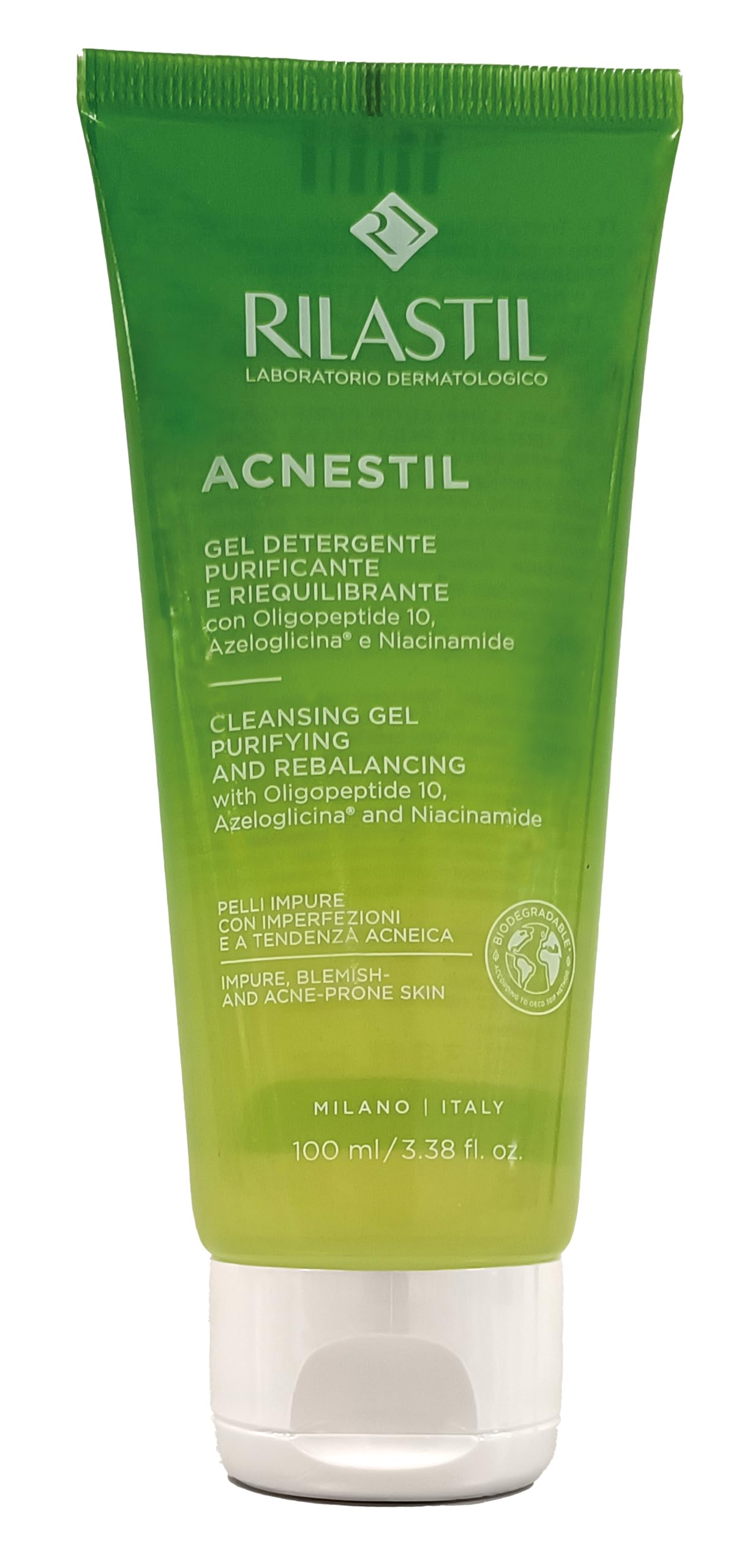 Rilastil Acnestil Anti-Spot and Moisturizing Cleansing Gel cleanses without drying with panthenol ceramides and hyaluronic acid for combination or oily acne-prone skin - 100 ml