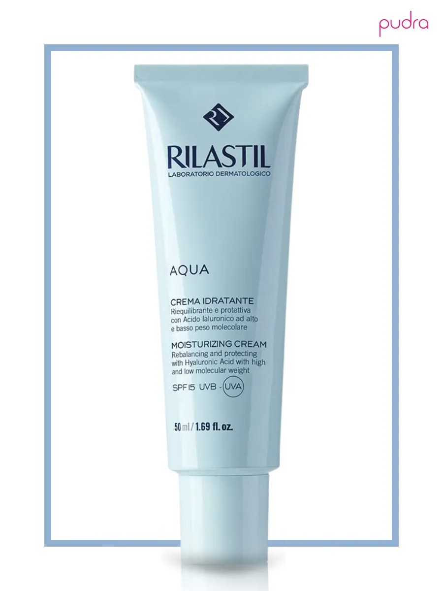 Rilastil Facial Moisturizing Cream SPF 15 is a facial moisturizer with hyaluronic acid and sunscreen.