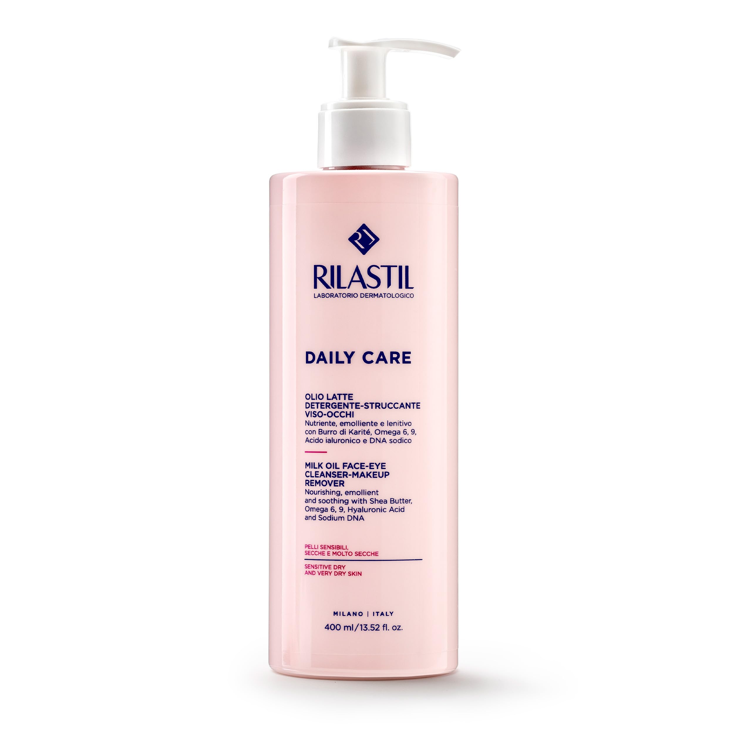 Rilastil Daily Care facial and eye cleansing milky oil moisturizing cleansing for sensitive and dry skin softening and softening with shea butter hyaluronic acid 400 ml