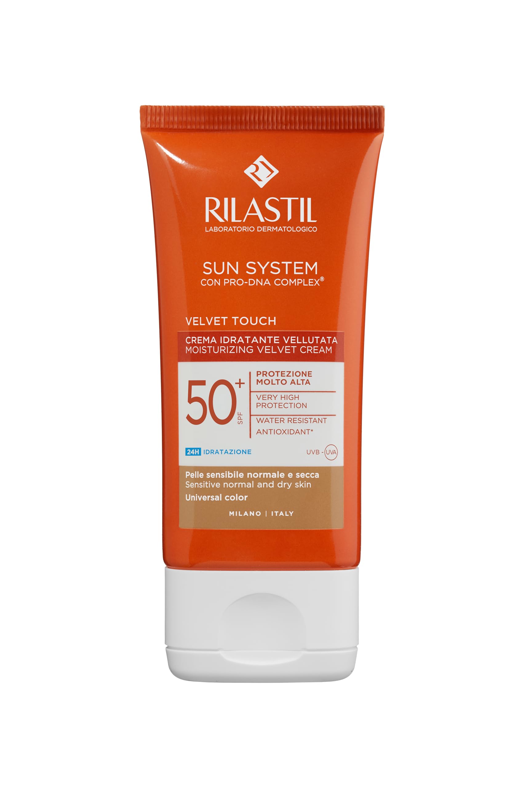 Rilastil Velvet Touch 50 crème hydratante veloutée, crème solaire visage et hydratante, couleur universelle, lot de 50 ml