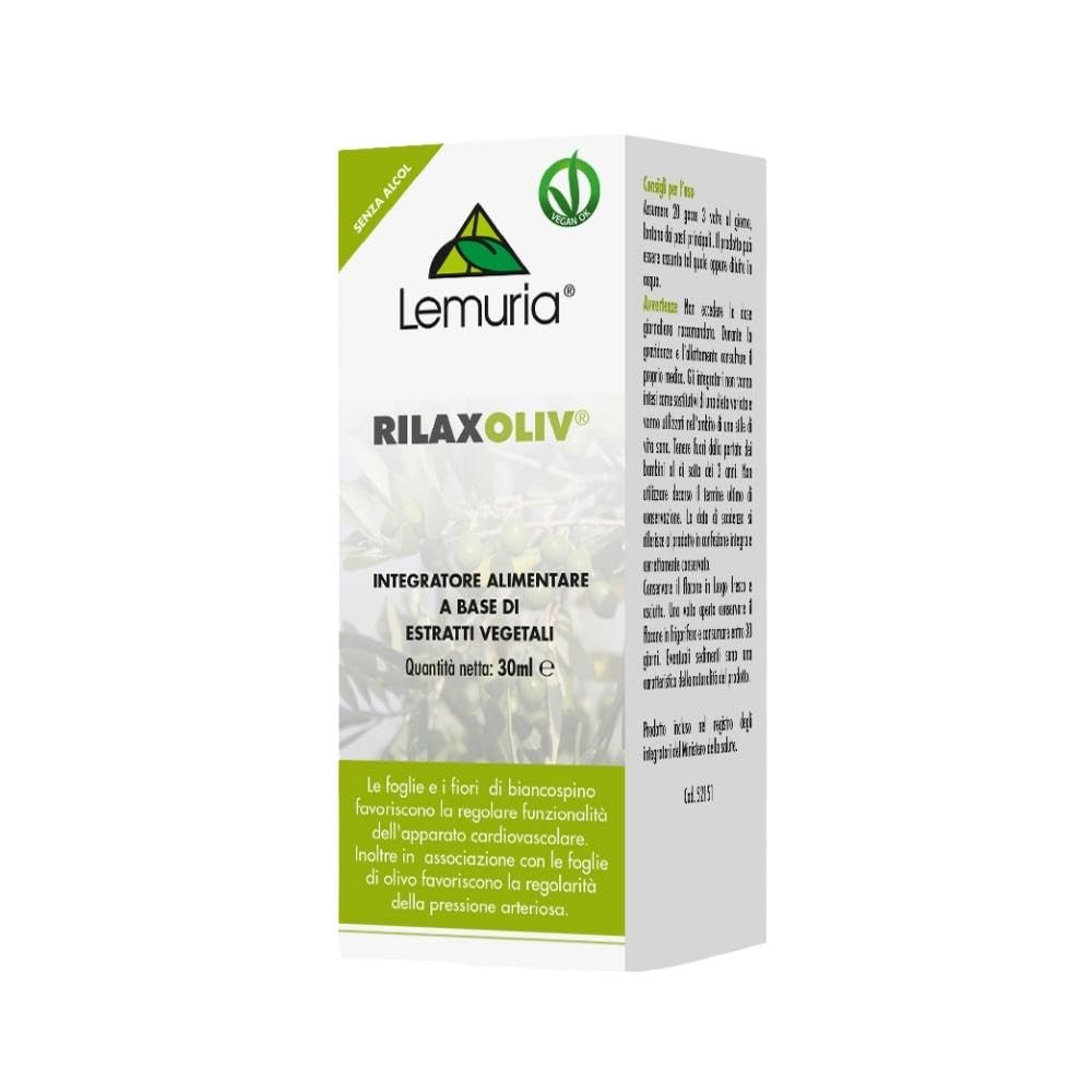 Physiological value Hawthorn leaves and flowers promote the regular functionality of the cardiovascular system. In addition, in combination with olive leaves, they promote the regularity of blood pressure. Ingredients Fructose, water, extract of: olive leaves (olea europaea l.) 50 , hawthorn flowers and leaves (crataegus axyacantha medicus) 20 , lemon balm leaves (melissa officinalis l.) 20 hawkweed herba (hieracium pilosella l. ) 10 . Total extract d:e 1:1 Directions for use Take 20 drops 3 times a day, away from main meals. The product can be taken as is or diluted in water. Packaging: 30 ml bottle. INGREDIENTS Fructose, Water, extract of: Olive leaves (Olea europea L.) 50 , Hawthorn flowers and leaves (Crataegus axyacantha medicus) 20 , Lemon balm leaves (Melissa officinalis L.) 20 Pilosella herba (Hieracium pilosella L.) 10 . Total extract D:E 1:1Directions for Use: Take 20 drops, 2 to 3 times a day, preferably before meals. The drops can be taken directly or diluted in a little water. Directions for Use: Take 20 drops, 2 to 3 times a day, preferably before meals. The drops can be taken directly or diluted in a little water. High Quality Ingredients: Made in Italy with natural extracts of olive leaves and hawthorn flowers, this dietary supplement is developed in compliance with the highest quality standards to ensure its effectiveness. Cardiovascular Support and Blood Pressure: The combination of olive and hawthorn helps maintain normal blood pressure and support the proper functioning of the cardiovascular system. These plants are known for their ability to promote blood circulation and improve cardiac well-being. Natural Food Supplement: RILAXOLIV is a natural extract made from olive leaves and hawthorn flowers, two plants known for their beneficial effects on cardiovascular health. This product is formulated without alcohol and lactose, suitable for vegans. Valeur physiologique les feuilles et les fleurs d'aubépine favorisent la fonctionnalité régulière du système cardiovasculaire. De plus, en association avec les feuilles d'olivier, elles favorisent la régularité de la tension artérielle. Ingrédients fructose, eau, extrait de : feuilles d'olivier (olea europaea l.) 50 , fleurs et feuilles d'aubépine (crataegus axyacantha medicus) 20 , feuilles de mélisse (melissa officinalis l.) 20 épervière herba (hieracium pilosella l. ) 10 . Extrait total d:e 1:1 mode d'emploi prendre 20 gouttes 3 fois par jour, loin des repas principaux. Le produit peut être pris tel quel ou dilué dans de l'eau. Conditionnement : Flacon de 30 ml. INGRÉDIENTS Fructose, Eau, extrait de : Feuilles d'olivier (Olea europea L.) 50 , Fleurs et feuilles d'aubépine (Crataegus axyacantha medicus) 20 , Feuilles de mélisse (Melissa officinalis L.) 20 Pilosella herba (Hieracium pilosella L.) 10 . Extrait total D:E 1:1Recommandations d'Utilisation : Prendre 20 gouttes, 2 à 3 fois par jour, de préférence avant les repas. Les gouttes peuvent être prises directement ou diluées dans un peu d'eau. Recommandations d'Utilisation : Prendre 20 gouttes, 2 à 3 fois par jour, de préférence avant les repas. Les gouttes peuvent être prises directement ou diluées dans un peu d'eau. Ingrédients de Haute Qualité : Fabriqué en Italie avec des extraits naturels de feuilles d'olivier et de fleurs d'aubépine, ce complément alimentaire est élaboré dans le respect des plus hautes normes de qualité pour garantir son efficacité. Soutien Cardiovasculaire et Pression Artérielle : L'association de l'olivier et de l'aubépine contribue à maintenir une pression artérielle normale et à soutenir le bon fonctionnement du système cardiovasculaire. Ces plantes sont reconnues pour leur capacité à favoriser la circulation sanguine et à améliorer le bien-être cardiaque. Complément Alimentaire Naturel : RILAXOLIV est un extrait naturel à base de feuilles d'olivier et de fleurs d'aubépine, deux plantes connues pour leurs effets bénéfiques sur la santé cardiovasculaire. Ce produit est formulé sans alcool et sans lactose, adapté aux personnes véganes.