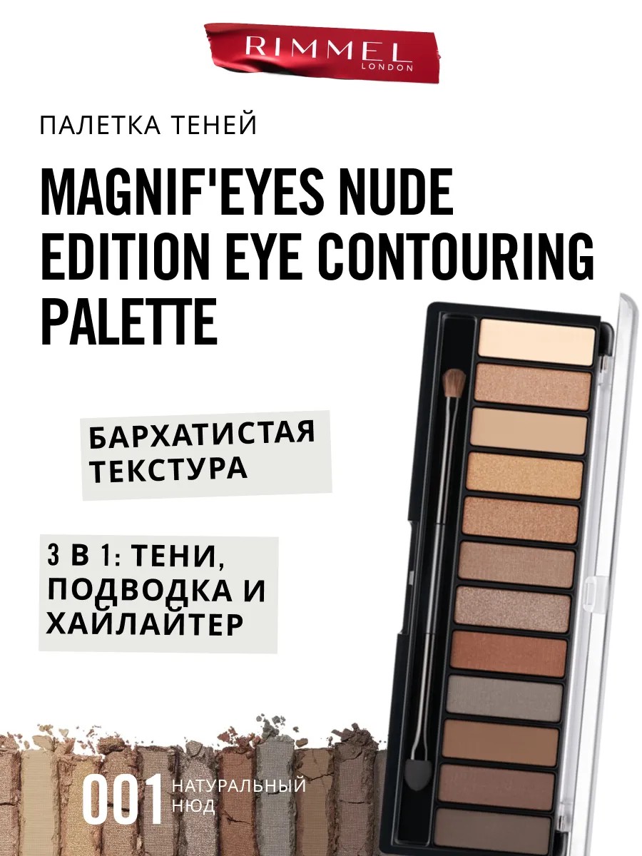 Подарите своим глазам идеальный нюдовый макияж с универсальной палеткой теней для век Rimmel London Magnif'eyes Nude Edition! Эта палетка теней – ваш ключ к созданию безупречных образов, от нежного повседневного до выразительного вечернего, всего за несколько движений.
