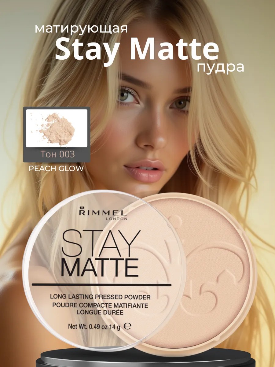 RIMMEL STAY MATTE Pressed Пудра - 003 PEACH GLOW 14 г.