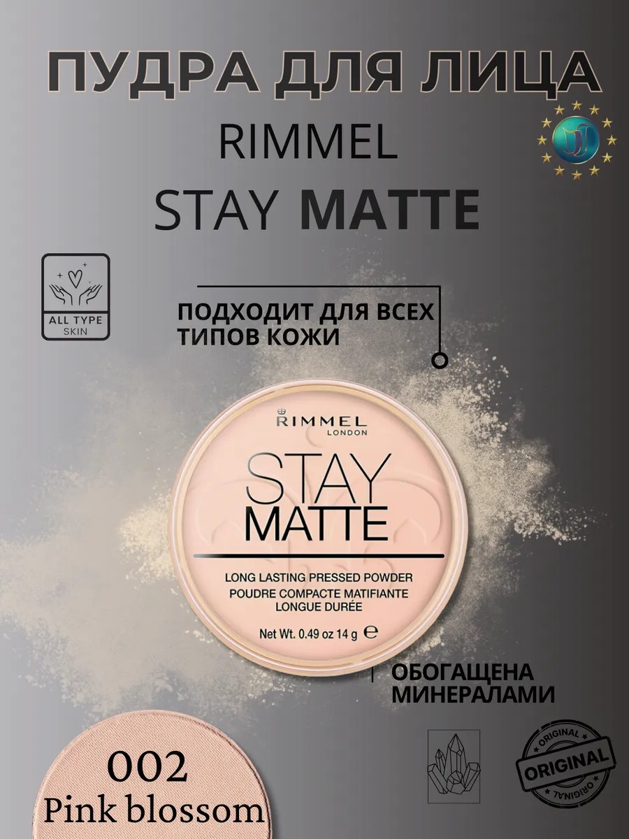 Original from Europe! Rimmel Stay Matte Long Lasting Face Powder 002 Pink Blossom with natural ingredients 14 g (3607345064512)