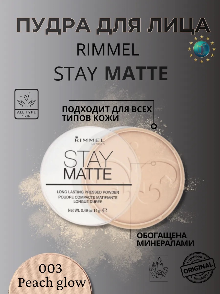 Оригинал из Европы! Пудра для лица Rimmel Stay Matte Long Lasting 003 Peach Glow с натуральными компонентами 14 г (3607345064529)