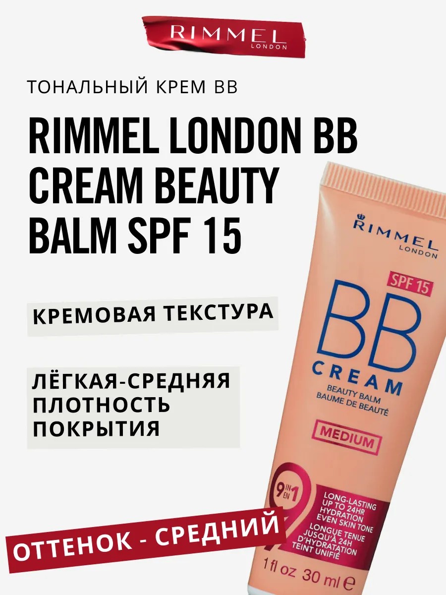 rimmel Тональный bb крем для лица Beauty Balm с spf 15 тон средний