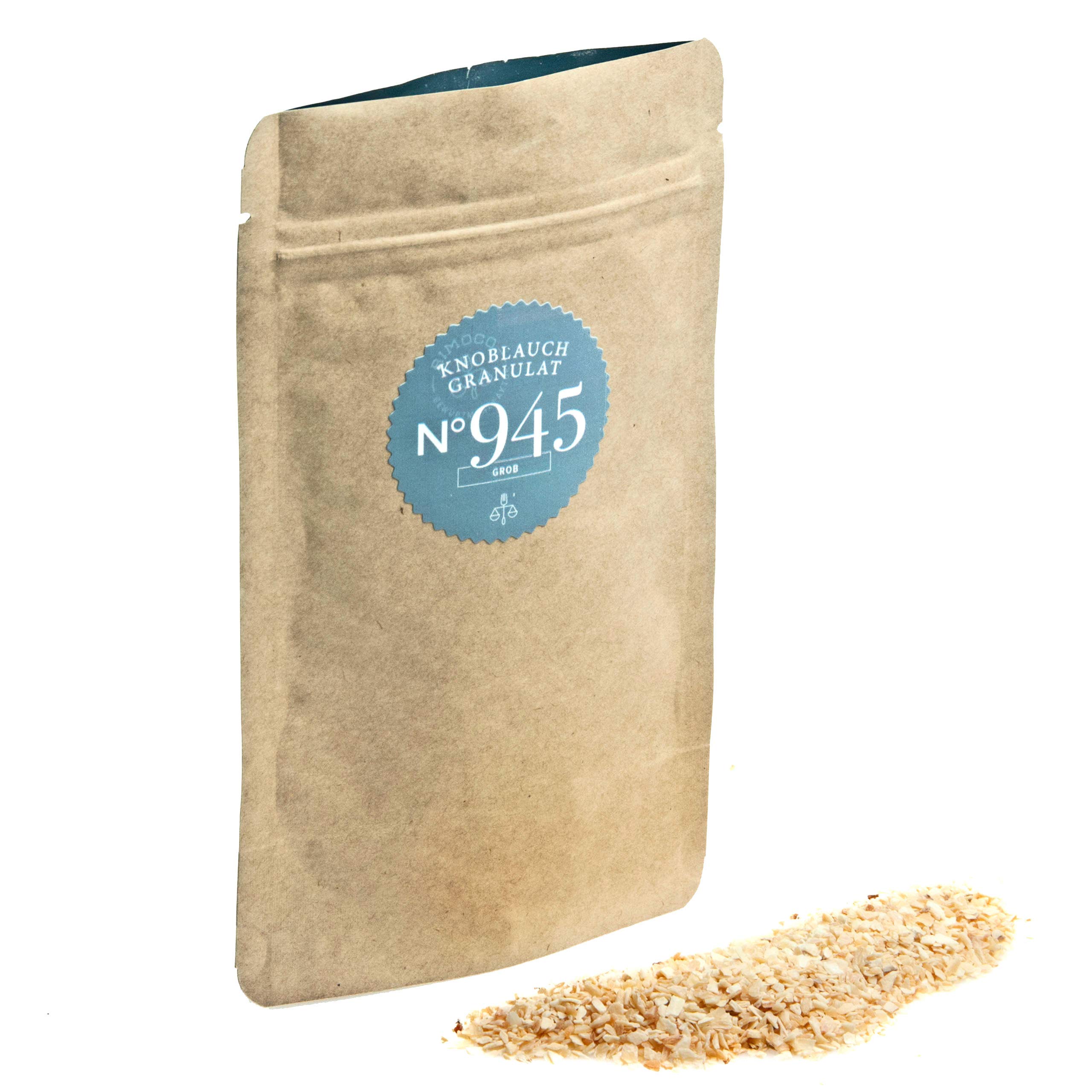 Rimoco N 945 Bio Knoblauch Granulat - Knoblauch Flocken getrocknet und granuliert herzhaft, würzig intensives Aroma in Kraftpapier Zip Frische-Beutel Inhalt: 80g Inhalt: 80g (Kraftpapierbeutel)