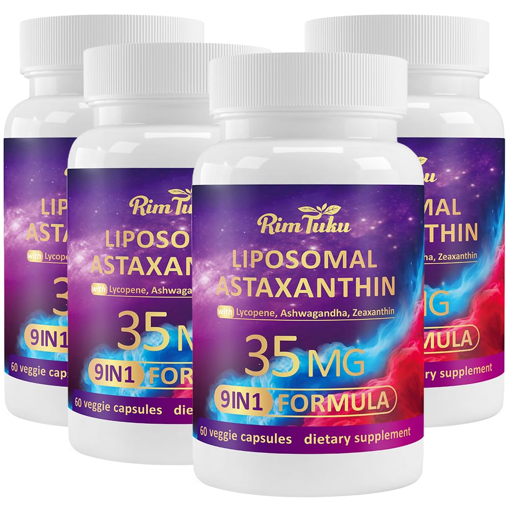 RimTuku Liposomal Astaxanthin Supplement Complex 9-in-1 with Ashwagandha Lycopene Zeaxanthin Antioxidant Supplement Support Eye Skin & Joint Health 240 Capsules