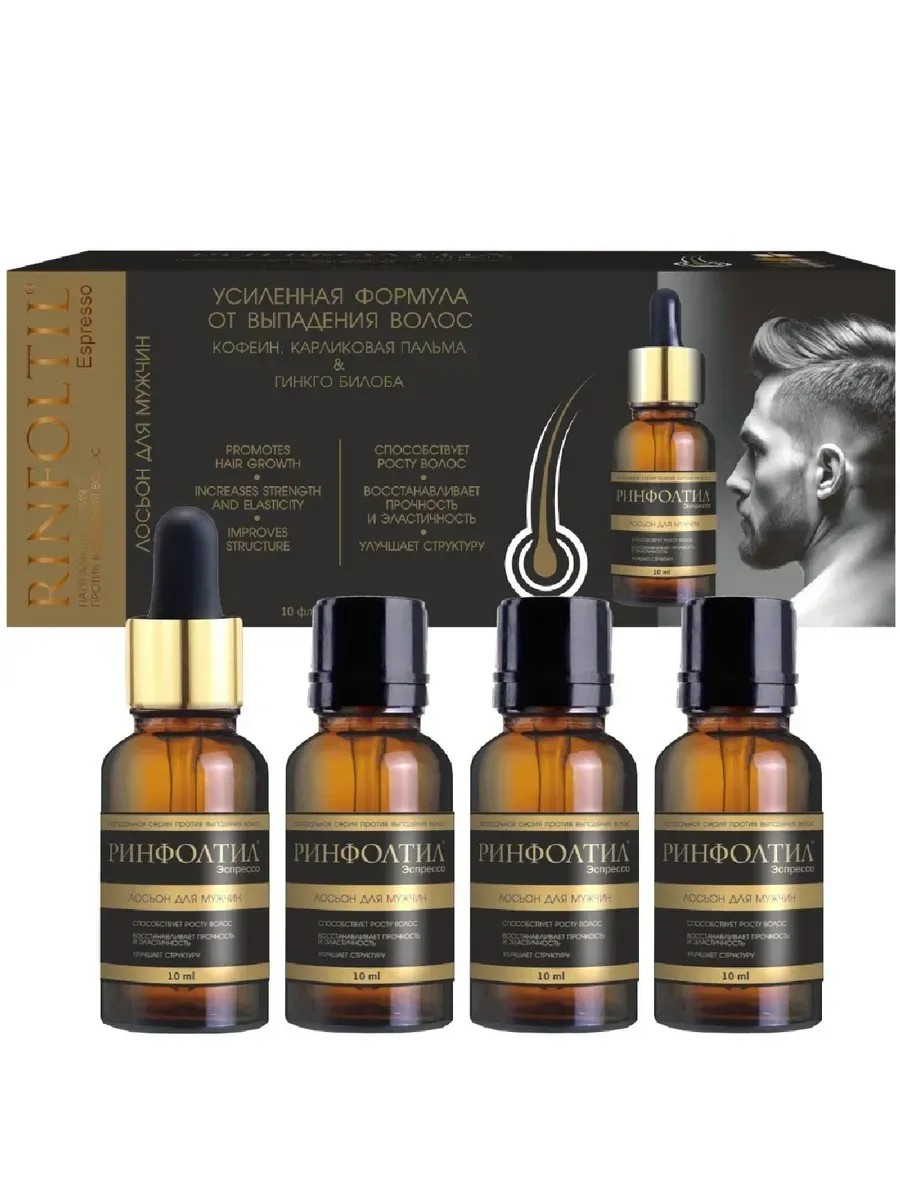 Ринфолтил Эспрессо Лосьон для активации естественного роста волос это эффективное средство, специально разработанное для мужчин, страдающих от выпадения волос. Уникальная усиленная формула с добавлением кофеина активирует процессы роста волос, улучшает микроциркуляцию крови и укрепляет волосяные фолликулы. Объем упаковки составляет 10 мл, что идеально подходит для ежедневного использования и удобен для путешествий.