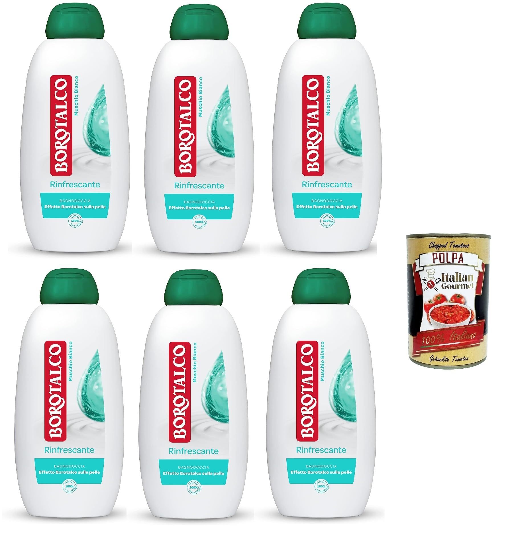 Borotalco Rinfrescante Muschio bianco Lot de 6 flacons de gel douche pour le corps musc blanc Formule rafraîchissante Fraîcheur enveloppante testée dermatologiquement 450 ml Polpa Italian Gourmet