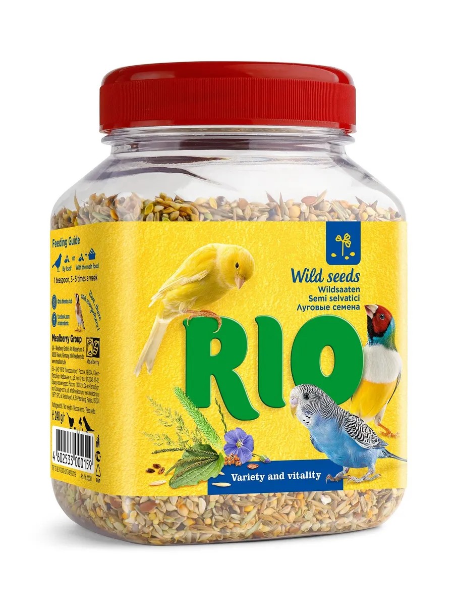 Thanks to the small seed size, this treat is perfect for canaries, forest and exotic birds, and budgies. Ingredients: ryegrass, yellow panicum, paisa, millet, meadow fescue, white bentgrass, timothy grass, cocksfoot, meadow bluegrass, awnless bromegrass, green foxtail, flax, red clover, broadleaf plantain, rapeseed, sorrel.