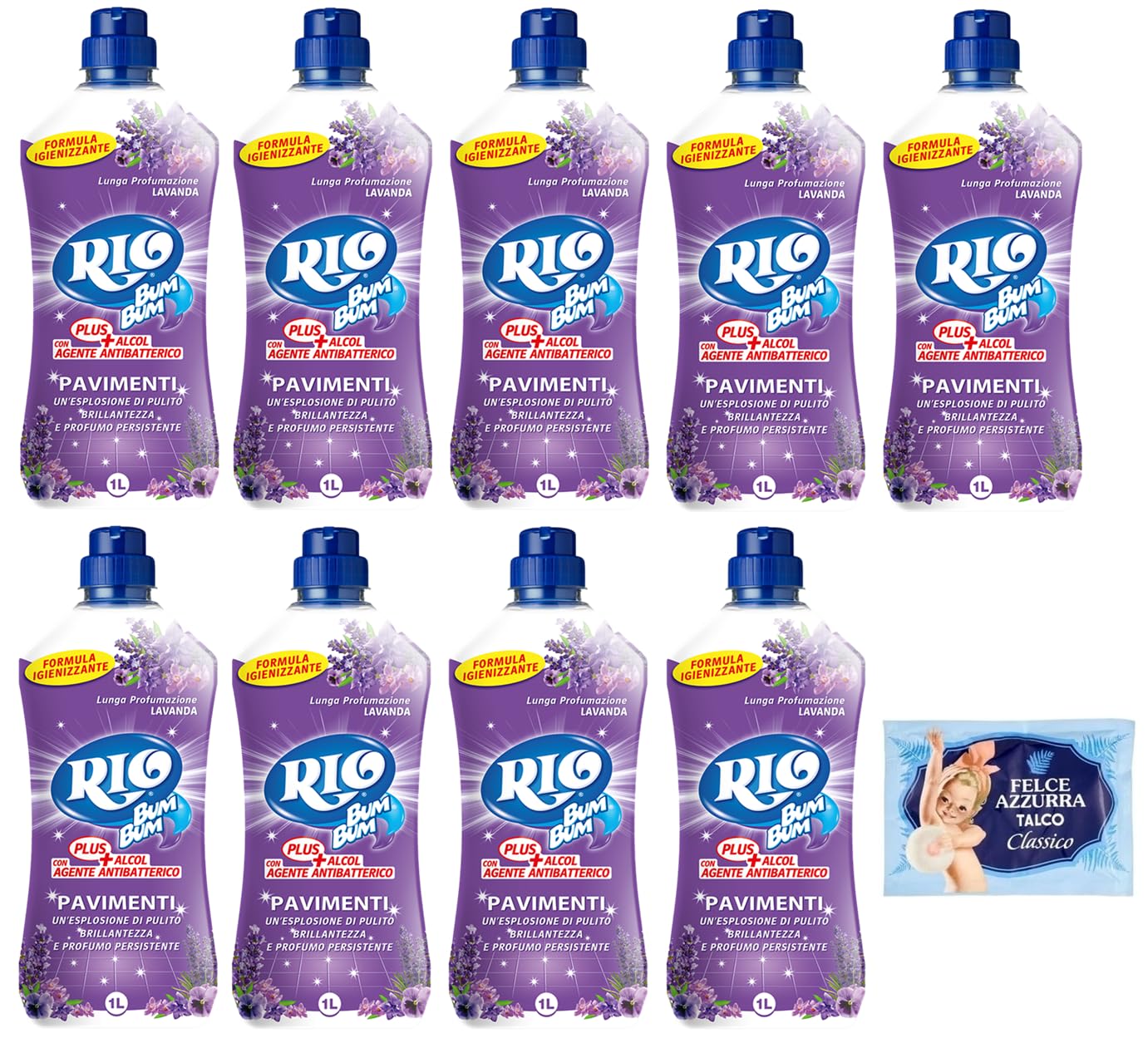RIO Bum Pavimenti Floor Cleaner with Alcohol Lavender 1 Litre + 1 x Free Felce Azzurra Talcum Powder Pack of 9 100 g Bag
