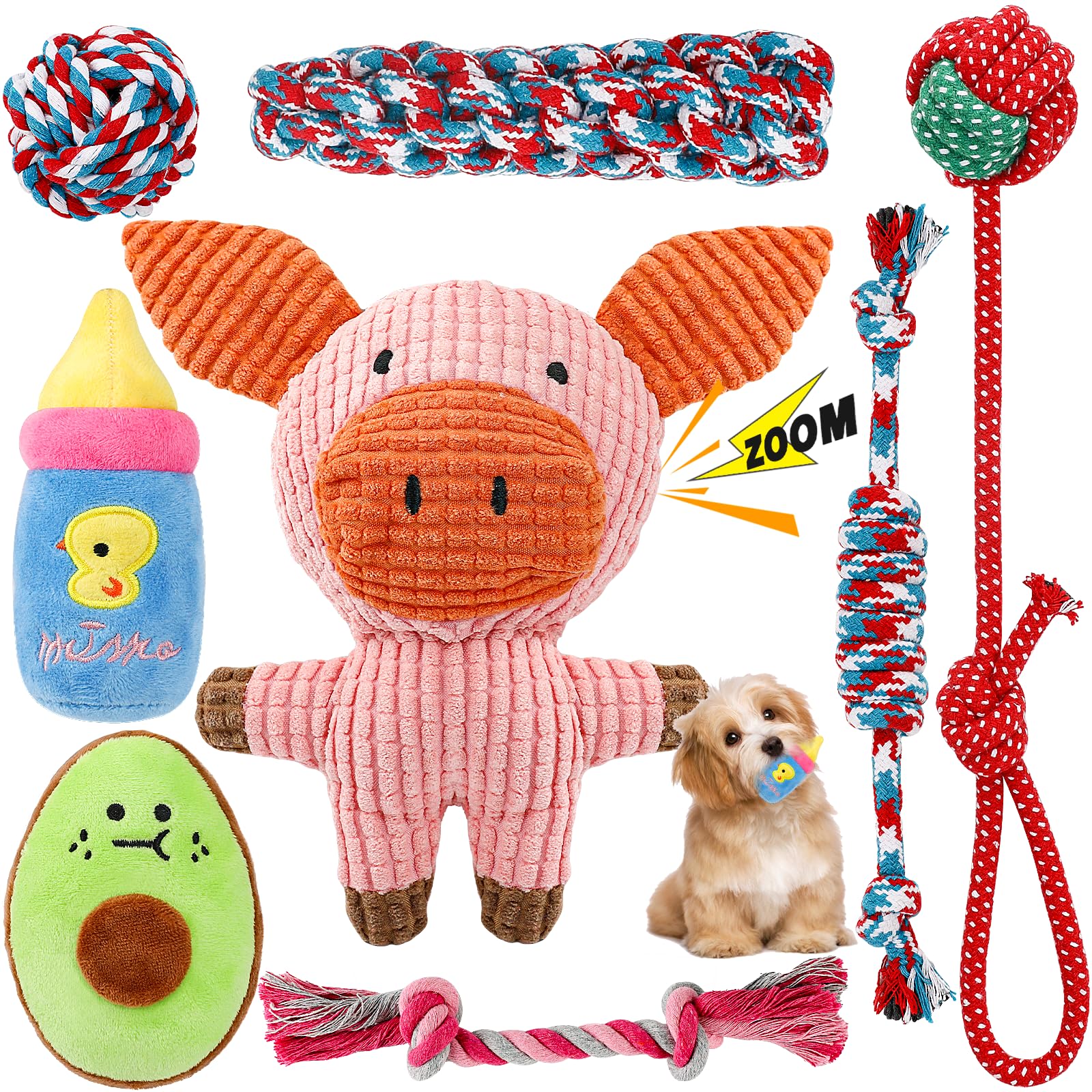 Unique and sweet styling: The dog toy set contains 5 dog toy ropes made of natural cotton and 3 squeaky dog ??toys in pork reform.The delightful dog toy in shape makes every interaction for fun.100 % safe material: Rio Direct dog toys intelligence set is made of natural, non -toxic, high -quality cotton, the material is machine washable and easy to clean.Absolutely safe for your pet.Keep your teeth clean: the cable fibers are chewing and playing like dental floss for your dog.They train the biting habits of their dog, help with the removal of plaque and prevent caries without being incurred.Suitable for several dog breeds: Rio Direct puppy toys is very chewy and robust to satisfy your dog's chewing instinct without having to worry about being nibbled during the interaction.It is a great toy to train your dog's concentration and strengthen your pet's intellectual skills.Excellent dog game: puppy play stuff can be used as a training toy for your dog to keep it concentrated so that you can train it effectively.This pet toy improves the relationship between you and your dog.Let your pet cheerfully enjoy the Christmas atmosphere!?? ?Excellent dog game? puppy Kachtzeugen can be used as a training toy for your dog to keep it concentrated so that you can train it effectively.This pet toy improves the relationship between you and your dog.Let your pet cheerfully enjoy the Christmas mood!.?? ?Suitable for several dog breeds? Rio Direct puppy toys is very chewing and robust to satisfy your dog's chewing drive without having to worry about being nibbled during the interaction.It is a great toy to train your dog's concentration and strengthen your pet's intellectual skills.?? ?Keep your teeth clean? The rope fibers are like dental floss for your dog chewing and playing.You train your dog's biting habits, help to remove the dental tray and prevent caries without having to pay for expensive veterinary costs.?? ?100% safe material? Rio direct dog toy intelligence set is made of natural, non -toxic, high -quality cotton, the material is machine washable and easy to clean.Absolutely safe for your pet.?? ?Unique and sweet styling? The dog toy set contains 5 natural cotton dog toy ropes and 3 squeaky dog ??toys in pig shape.The adorable form dog toys is fun. Einzigartiges und süßes Styling: Das Hundespielzeug-Set enthält 5 Hundespielzeugseile aus natürlicher Baumwolle und 3 quietschende Hundespielzeuge in Schweineform. Das entzückende Hundespielzeug in Form macht jede Interaktion zum Spaß. 100 % sicheres Material: Rio Direct Hundespielzeug Intelligenzset besteht aus natürlicher, ungiftiger, hochwertiger Baumwolle, das Material ist maschinenwaschbar und leicht zu reinigen. Absolut sicher für Ihr Haustier. Halten Sie Ihre Zähne sauber: Die Seilfasern sind für Ihren Hund beim Kauen und Spielen wie Zahnseide. Sie trainieren die Beißgewohnheiten Ihres Hundes, helfen bei der Entfernung von Plaque und verhindern Karies, ohne dass teure Tierarztkosten anfallen. Geeignet für mehrere Hunderassen: Rio Direct Welpenspielzeug ist sehr kaubar und robust, um den Kauinstinkt Ihres Hundes zu befriedigen, ohne dass Sie sich Sorgen machen müssen, während der Interaktion angeknabbert zu werden. Es ist ein großartiges Spielzeug, um die Konzentration Ihres Hundes zu trainieren und die intellektuellen Fähigkeiten Ihres Haustieres zu stärken. Ausgezeichnetes Hundespiel: Welpenkauspielzeug kann als Trainingsspielzeug für Ihren Hund verwendet werden, um ihn konzentriert zu halten, damit Sie ihn effektiv trainieren können. Dieses Haustierspielzeug verbessert die Beziehung zwischen Ihnen und Ihrem Hund. Lassen Sie Ihr Haustier die Weihnachtsatmosphäre fröhlich genießen!??? AUSGEZEICHNETES HUNDESPIEL? welpen kauspielzeug kann als Trainingsspielzeug für Ihren Hund verwendet werden, um ihn konzentriert zu halten, damit Sie ihn effektiv trainieren können. Dieses Haustierspielzeug verbessert die Beziehung zwischen Ihnen und Ihrem Hund. Lassen Sie Ihr Haustier die Weihnachtsstimmung fröhlich genießen!. ???GEEIGNET FÜR MEHRERE HUNDERASSEN? Rio Direct Welpenspielzeug ist sehr kautauglich und robust, um den Kautrieb Ihres Hundes zu befriedigen, ohne dass Sie sich Sorgen machen müssen, während der Interaktion angeknabbert zu werden. Es ist ein großartiges Spielzeug, um die Konzentration Ihres Hundes zu trainieren und die intellektuellen Fähigkeiten Ihres Haustieres zu stärken. ???HALTEN SIE IHRE ZÄHNE SAUBER? Die Seilfasern sind wie Zahnseide für Ihren Hund beim Kauen und Spielen. Sie trainieren die Beißgewohnheiten Ihres Hundes, helfen, den Zahnbelag zu entfernen und beugen Karies vor, ohne dass Sie teure Tierarztkosten bezahlen müssen. ???100% SICHERES MATERIAL? Rio Direct hundespielzeug intelligenz set besteht aus natürlicher, ungiftiger, hochwertiger Baumwolle, das Material ist maschinenwaschbar und leicht zu reinigen. absolut sicher für Ihr Haustier. ???EINZIGARTIGES UND SÜSSES STYLING?Das Hundespielzeug-Set enthält 5 natürliche Baumwoll-Hundespielzeugseile und 3 quietschende Hundespielzeuge in Schweinchenform. Die entzückende Form Hundespielzeug macht jede Interaktion Spaß.RIO Direct Hundespielzeug kleine Hunde, 8 Stück Quietschendes Plüsch Hundeseil, Welpenspielzeug Kleine Welpen Waschbares Natürlicher Baumwolle und Ungiftig(Niedliches Schwein Styles)