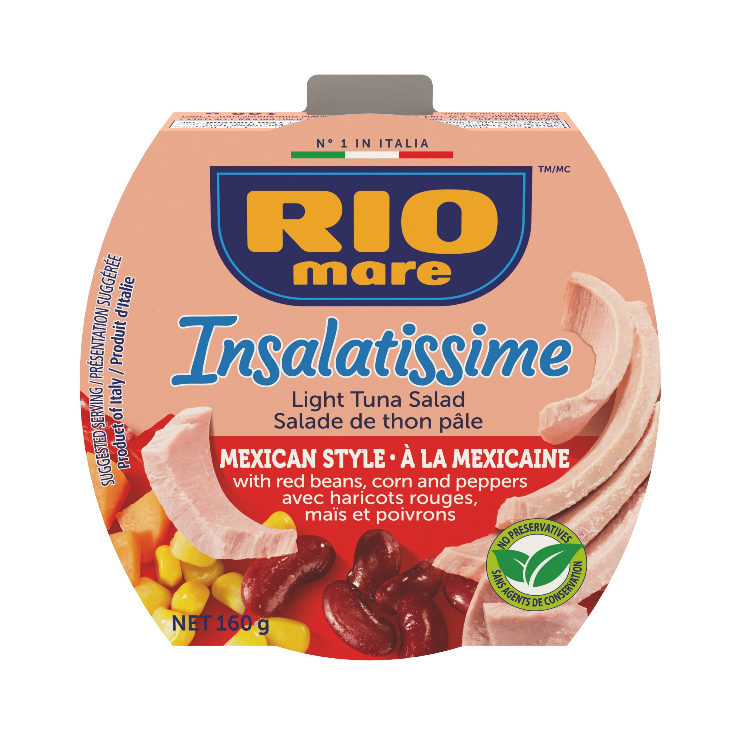 Rio Mare We at Rio Mare offer you Responsible Quality in all of our products. Rio Mare is committed to sustainable fishing, producing in low environmental impact plants and manufacturing premium-quality products for a balanced diet. Rio Mare - Insalatissime Mexican Style, Ready to Eat Light Tuna Salad, High in Protein, No Preservatives the unique taste of Rio Mare prime quality tuna is enhanced by the balanced combination of vegetables and spices. Ready to eat meal at any time with easy-open tab and stay-fresh packaging. Product of Italy.Cooking tip: great on its own or try it on a large slice of toasted bread lightly rubbed with fresh garlic. Ingredients Skipjack tuna 26 (Katsuwonus pelamis), red beans, corn, corn oil, carrots, peppers, salt, natural flavourResponsible Quality: Rio Mare is committed to sustainable fishing, to the respect of the environmental and of the people. Cooking tip: great on its own or try it on a large slice of toasted bread lightly rubbed with fresh garlic. Ingredients: skipjack tuna 26 (Katsuwonus pelamis), red beans, corn, corn oil, carrots, peppers, salt, natural flavour. Size: single 160g can. High in protein: 16g of protein and 5g of fibres per 160g can, all natural ingredients with no preservatives. Product: the unique taste of Rio Mare prime quality tuna is enhanced by the balanced combination of vegetables and spices. Ready to eat meal at any time with easy-open tab and stay-fresh packaging.