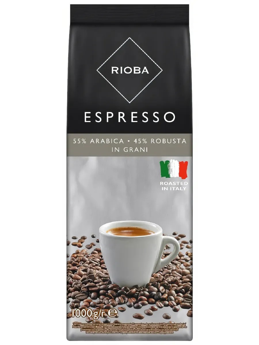Rioba Silver 55% Arabica 45% Robusta coffee beans are a high-quality, delicious Italian coffee drink, perfect for professional baristas in cafes, hotels, and restaurants. Rioba Silver beans are harvested from plantations in Brazil, Central America, Central Africa, and India. Slow roasting preserves the rich aroma and natural properties of the coffee. This drink has an invigorating effect on the body, helps wake up, and puts you in a good mood. Many consumers choose this brand of coffee due to its optimal price-quality ratio. The product offers numerous advantages that domestic consumers have already appreciated.