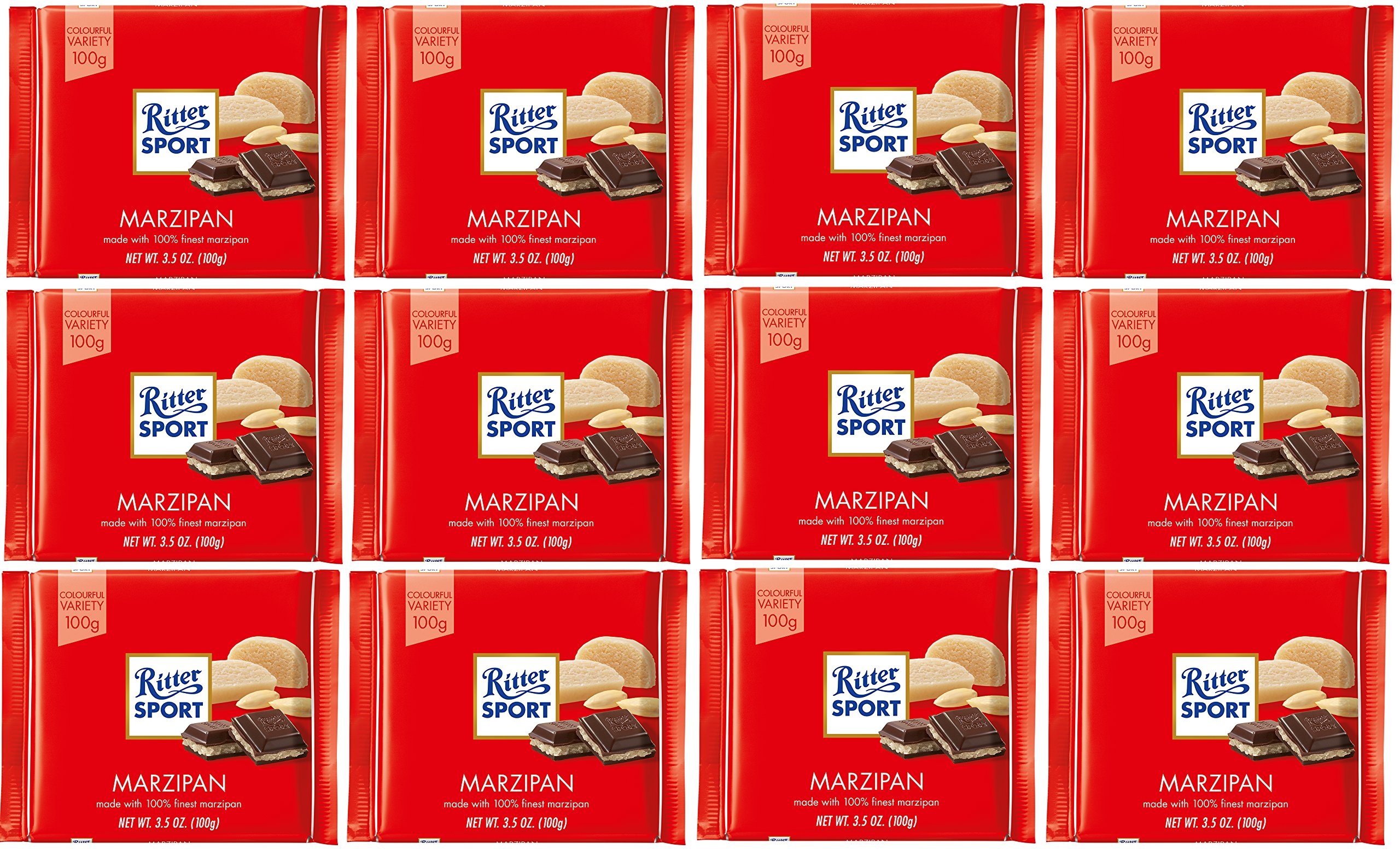 Ritter Sport Chocolat avec pâte d'amande 100 g - Lot de 12