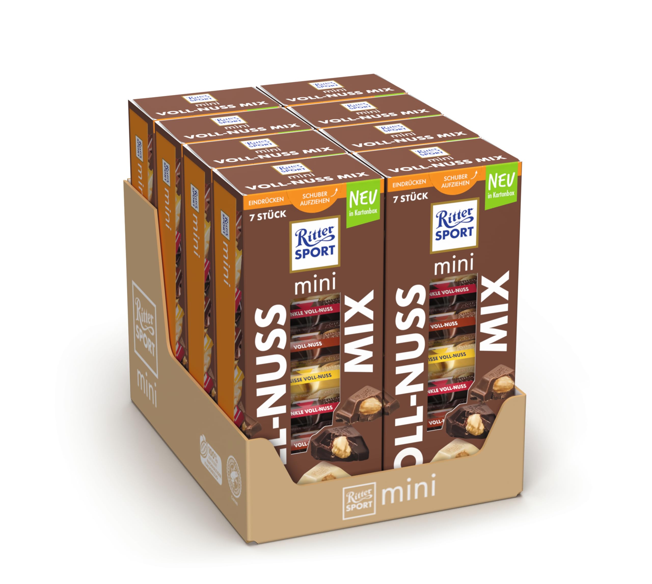Extra milk chocolate with whole hazelnuts (16 ). Cocoa: 30 minimum in the milk chocolate. Dark chocolate with whole hazelnuts (16 ). Cocoa: 50 minimum in the chocolate. White chocolate with whole hazelnuts (16 ). One hazelnut per square, for an irresistible crunch. Three delicious flavors enriched with whole roasted crunchy hazelnuts and covered in creamy white chocolate or milk chocolate. Perfect for sharing, giving as a gift, but above all, for treating yourself to a moment of pure indulgence! The compact and elegant box is also suitable for a small gift: beautiful to look at, why wrap it? 100 sustainably sourced cocoa. Selected, high-quality natural ingredients. Recipes reduced to the essentials. GMO-free, no artificial flavors, no additives. Fully recyclable packaging. Climate-neutral production. INGREDIENTS Chocolate Assortment: Extra milk chocolate with whole hazelnuts (16 ) Cocoa: 30 minimum in the milk chocolate. Dark chocolate with whole hazelnuts (16 ). Cocoa: 50 minimum in the chocolate bar. White chocolate with whole hazelnuts (16 ) Ingredients: sugar, nuts, cocoa butter, cocoa mass, whole milk powder, lactose, anhydrous butter, skimmed milk powder, emulsifier: SOIA lecithins. May contain peanuts, other tree nuts, cereals containing gluten, and eggs. SAFETY WARNING May contain peanuts, other tree nuts, and eggs. See moreRITTER SPORT Mini tour 116g Special Nuts, mélange chocolats, 3 saveurs, chocolat au lait extra avec noisettes, chocolat noir avec noisettes, chocolat blanc avec noisettes, 8 mini-tour de 7 piècesDESCRIPTION DU PRODUIT DESCRIPTION DU PRODUIT Chocolat au lait extra avec noisettes entières (16 ). Cacao : 30 minimum dans le chocolat au lait. Chocolat noir avec noisettes entières (16 ). Cacao : 50 minimum dans le chocolat. Chocolat blanc avec noisettes entières (16 ). Une noisette pour chaque carré, pour un croustillant. irrésistible. Trois délicieux saveurs enrichies en noisettes entières croustillantes grillées et recouvertes de chocolat blanc crémeux ou de chocolat noir au lait. Parfait à partager, offrir, mais surtout pour s'offrir un moment gourmand tout pour soi ! Dans la boîte compacte et élégante, convient également pour un petit cadeau : belle déjà à regarder, pourquoi la emballer ? Approvisionnement en cacao 100 certifié durable. Ingrédients naturels sélectionnés et de haute qualité. Recettes réduites à l'essentiel. Sans OGM, sans arômes, sans additifs. Emballage entièrement recyclable. Production climatiquement neutre. INGRÉDIENTS Assortiment de chocolat : chocolat au lait extra avec noisettes entières (16 ) Cacao : 30 minimum dans le chocolat au lait. Chocolat noir avec noisettes entières (16 ). Cacao : 50 minimum dans le galet Chocolat blanc avec noisettes entières (16 ) Ingrédients : sucre, noix, beurre de cacao, pâte de cacao, lait entier en poudre, lactose, beurre anhydre, lait écrémé en poudre, émulsifiant : lécithines de SOIA. Peut contenir des cacahudes, autres fruits à coque, céréales contenant des gluten et des œufs. AVERTISSEMENT DE SÉCURITÉ Peut contenir des cacahuètes, d'autres fruits à coque et des œufs. Voir plus