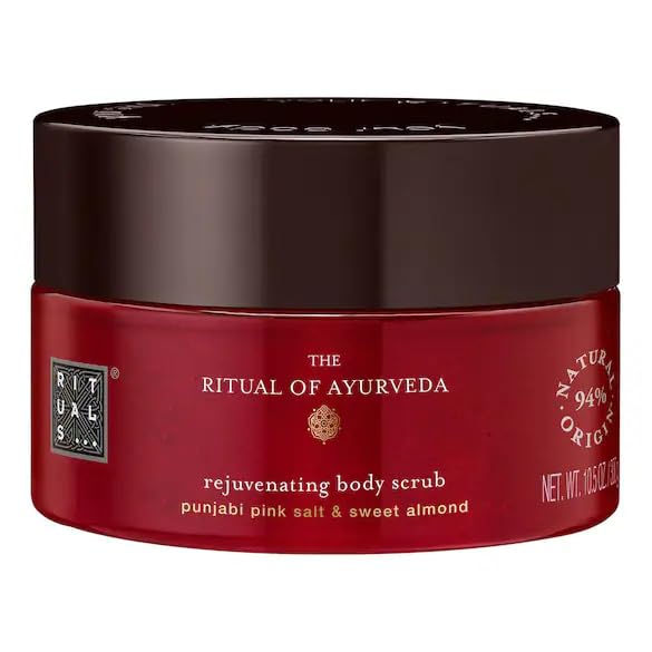 : Enhance your skincare routine with our nourishing oil-based body scrub. Enriched with mineral salt and a delicate blend of sweet almond and Indian rose oils, it provides gentle yet effective exfoliation. Safety Warning S NThe Ritual of Ayurveda: Inspired by traditional Ayurvedic science, this scrub purifies the body and stimulates the flow of energy. A sweet and captivating fragrance: The delicate aroma of Indian rose blends with the richness of coconut and sweet almond oils, high in vitamin E, to envelop the skin in a delicate scent. Nourishing ingredients: The combination of Punjab pink salt and sweet almond oil removes dead skin cells and intensely nourishes the skin. Cleanses the skin: Remove impurities with this nourishing scrub and complete the ritual with the shower foam and other Rituals body care products.Description du produit Sublimez votre routine de soins avec notre gommage corps nourrissant à base d'huile. Enrichi en sel minéral et en un mélange délicat d'huile d'amande douce et de rose indienne, il offre une exfoliation douce et efficace. Avertissement De Sûreté S NThe Ritual of Ayurveda : inspiré de la science ayurvédique traditionnelle, ce gommage purifie le corps et stimule le flux d'énergie. Parfum doux et envoûtant : l'arôme sucré de la rose d'Inde se mêle à la délicatesse de l'huile de noix de coco et de l'amande douce, riches en vitamine E, pour envelopper la peau d'un parfum délicat. Ingrédients nourrissants : l'association du sel rose du Pendjab et de l'huile d'amande douce élimine les cellules mortes et nourrit intensément la peau. Nettoie la peau : élimine les impuretés grâce à ce gommage nourrissant et complétez le rituel avec la mousse de douche et les autres soins corps de Rituals.RITUALS – Gommage Corps Revitalisant The Ritual of Ayurveda à la Rose Indienne, Sel Rose du Pendjab Amande Douce – 125 g