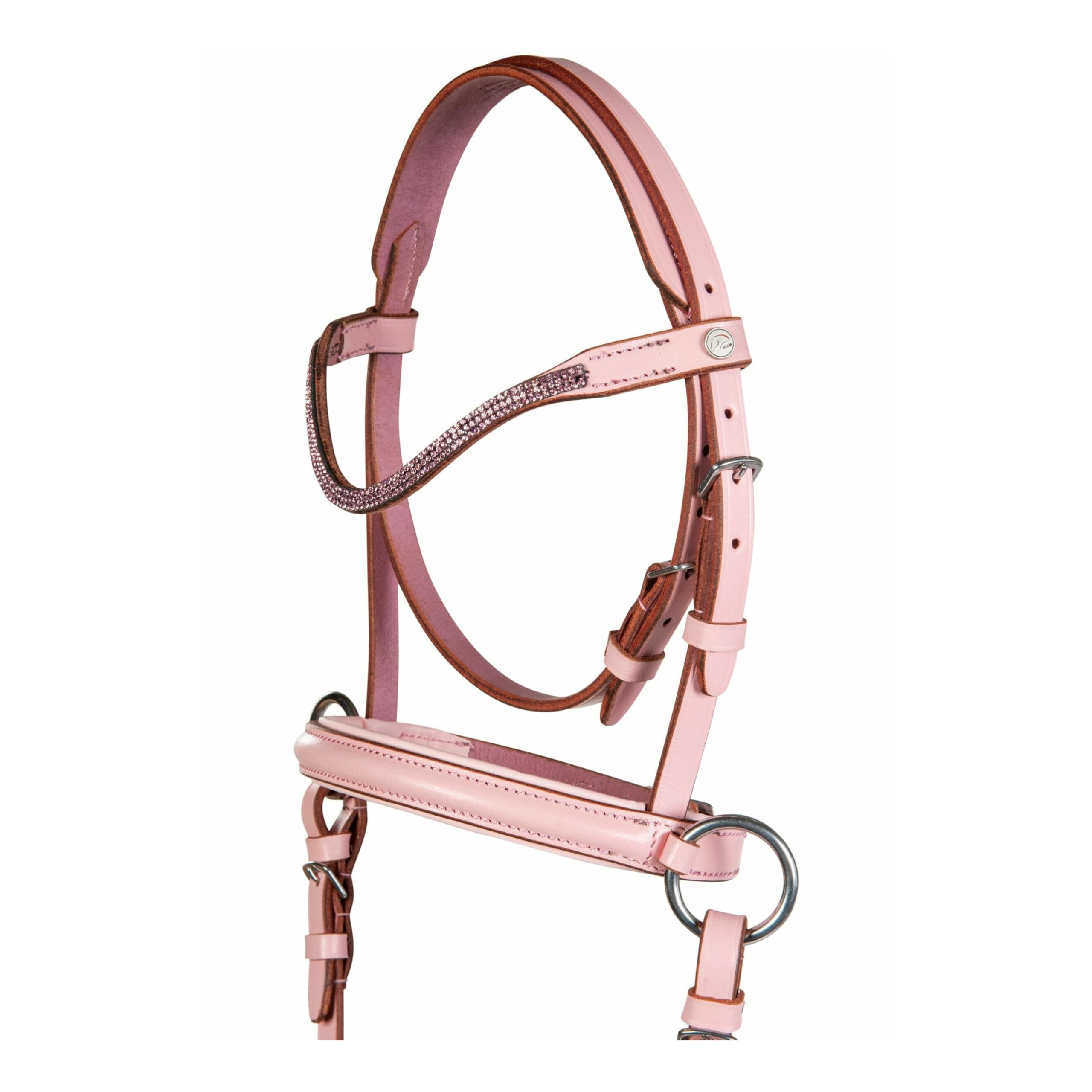 Can be combined: can be combined perfectly with other products from the Funny Horses collection such as saddle pads, halter and gaiters - for an authentic riding experience.Adaptable: The straps can easily adapt the bridle to the head size of the wooden horse and therefore offers an optimal seat. Design: with robust, silver -colored fittings and a headband with synthetic glittering stones for a glossy appearance.Quality: Made of high -quality real leather for a long service life and an authentic look.Bridle: biteless bridle for wooden horses made of real leather with throat, nose and forehead straps, headband with synthetic diamonds and incl. In another- suitable for minishetty in the color pink.