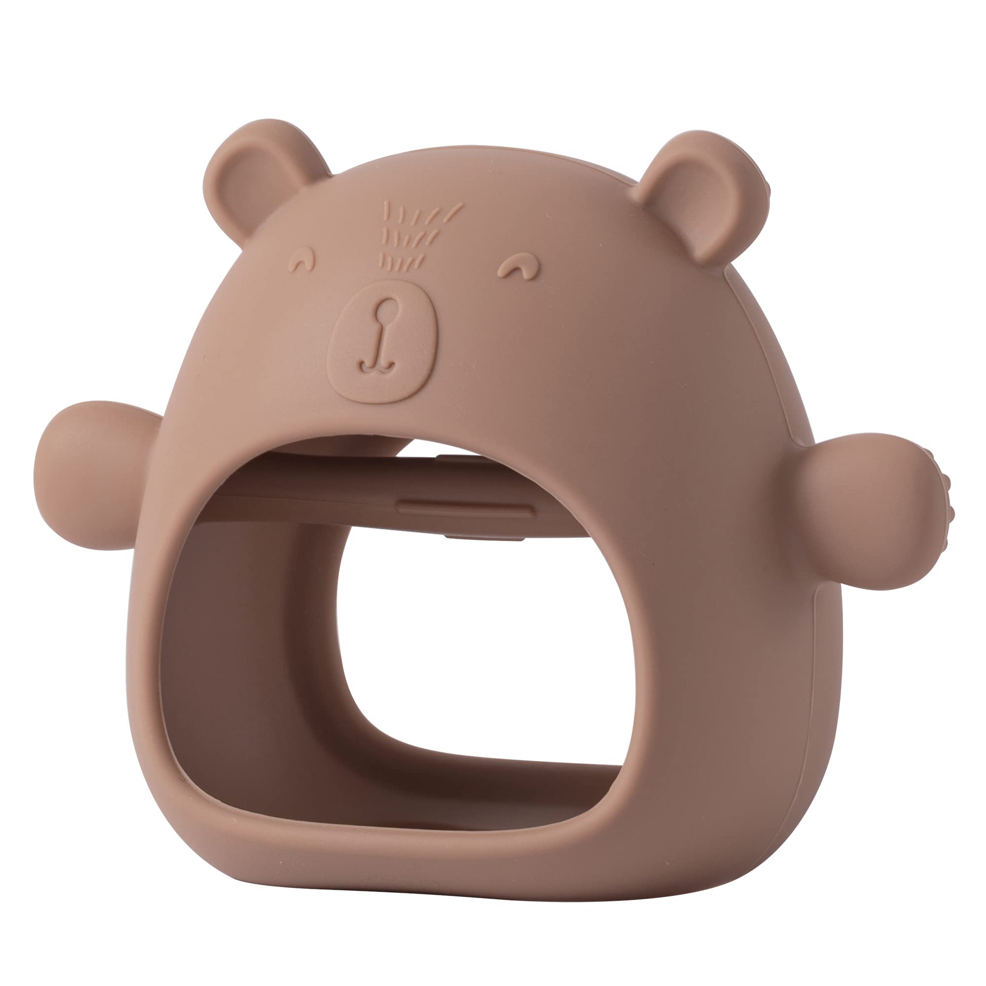 TIPS: Can be sterilized in hot boiling water and steam sterilizer. For the first use, please boil for 3 minutes. ?Safety and health?: The soft silicone material not only soothe teething discomfort, protects the baby’s gums, but also exercises the baby’s grasping ability. In addition, it can prevent gnawing harmful things, soothe baby's emotions, promote baby's brain development. ?WHOLE-HEARTED CARE?: Stereoscopic small animal gums and brightly colored cartoon gums can attract baby's attention, stimulate baby's desire to explore, and meet baby's physical and mental needs. Baby teething toys have different shapes and large chewing areas. Different shapes of chewing points massage the gums with different touches, stimulate budding and development, and bring the baby full. ?EASY TO CLEAN?Open design, no hygienic dead corners, easy to clean, microwave, freezer and dishwasher safe. Just put it down the running water and rinse it after each use. ?EASY TO GRASP & NEVER DROP?: There is a stem inside the hollow Bear body for the little hand to grasp. The nipples are on both sides, when the baby hold it, can very easily to locate the nipple into the mouth. Wear on baby's wrist, baby's hand is still free and sanitary. when holding it, can very easily to locate the massage granules into the mouth. Prevent the baby will drop it on the ground, cause bacteria dust and other contamination, the virus bacteria into the body?. ?RELIABLE MATERIAL?: Our bear glove teething toys are made of 100% food grade silicone, non-toxic, BPA free, lead free, and phthalate free, soft, flexible, can be safely applied.Item Dimensions LxWxH: 4.17 x 2.3 x 3.27 inches. Material Type Free: BPA Free, Phthalate Free, Latex Free, Lead Free. Brand: RMGVG. Color: Brown. Material: Silicone. Best Sellers Rank: #22,246 in Baby. Customer Reviews: 4.7 4.7 out of 5 stars 111 ratings 4.7 out of 5 stars. : B0B3RFBBT4. Item Weight: ?1.44 ounces. Batteries required: ?No. Number Of Items: ?1. Care instructions: ?Clean after Use. Material free: ?BPA Free, Phthalate Free, Latex Free, Lead Free. material_composition: ?Edible silica gel. Material Type: ?Silicone. Product Dimensions: ?4.17 x 2.3 x 3.27 inches.
