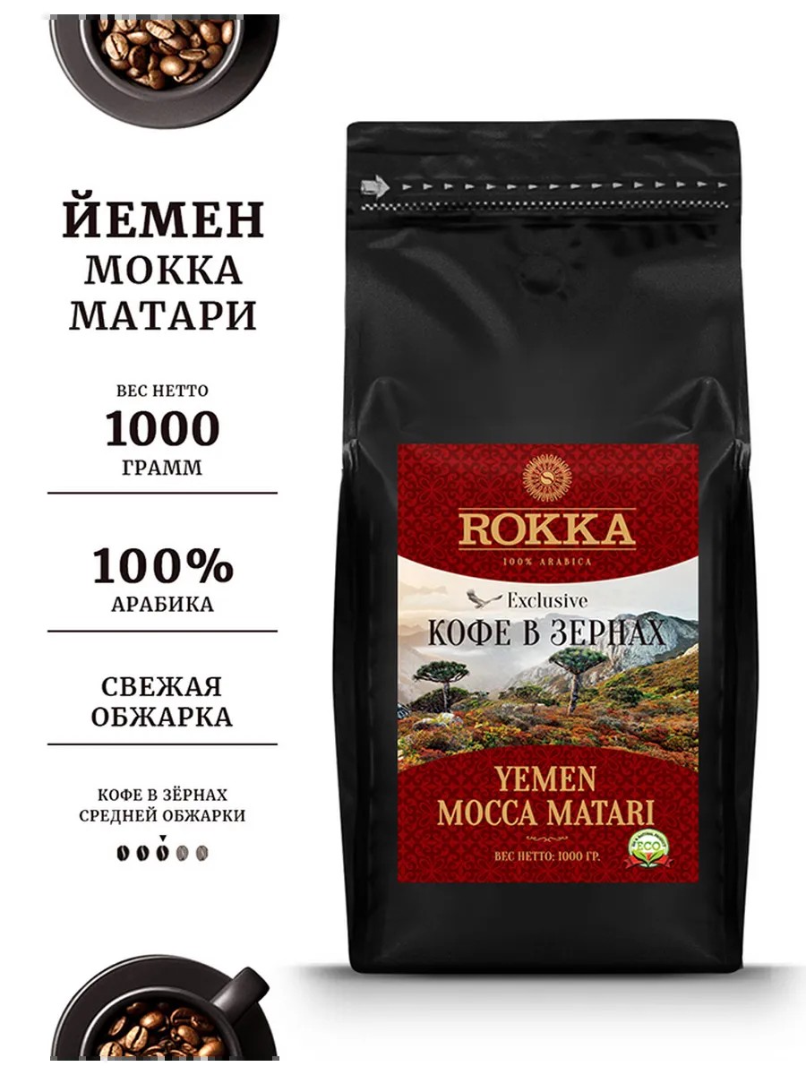 Rokka Кофе в зернах Йемен Мокка Матари 1 кг