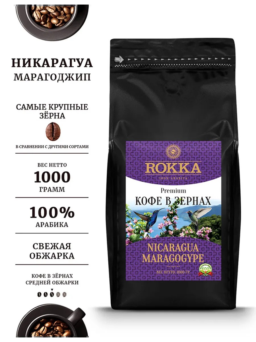 Rokka Кофе в зернах Никарагуа Марагоджип 1 кг