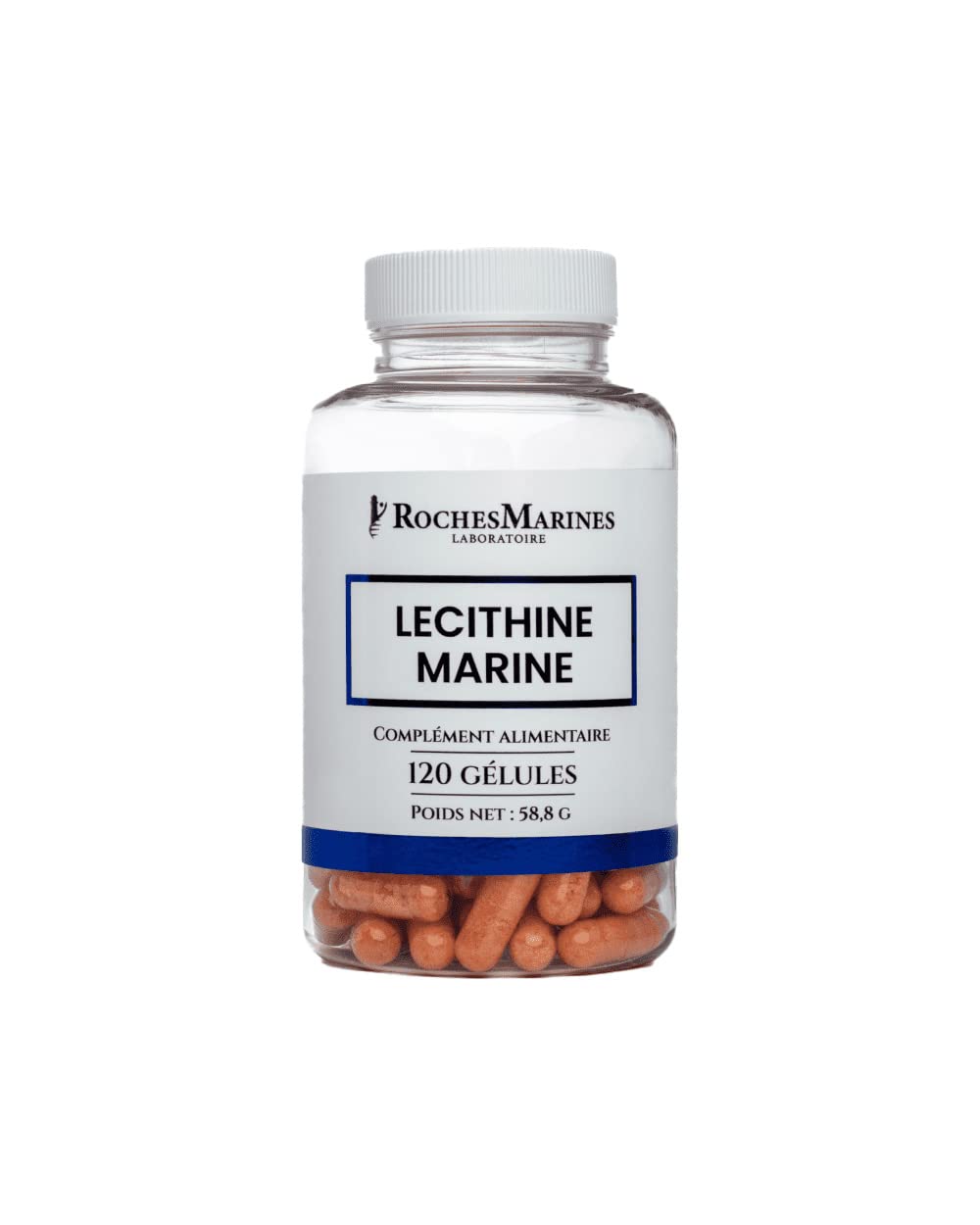 WHAT IS THE STORY OF ROCHES MARINES? Roches Marines is a French company, founded in 2018 in Loire-Atlantique. Since then, we have become a brand recognized for our innovative vision. Every day, our research team innovates to harness the power of plants for your well-being. All our products are subject to strict manufacturing procedures (HACCP procedures, etc.). QUALITY AND PURITY GUARANTEED. This dietary supplement was developed by our team of French scientists, whose laboratory is based in Nantes. Each supplement is certified GMO-free and nanoparticle-free (in accordance with regulations). We are members of BLUE FISH, an association that works to promote sustainable and responsible fishing. Finally, our supplements undergo meticulous quality control by our quality and logistics department. WHY BUY MARINE LECITHIN FROM ROCHES MARINES? Our marine lecithin, developed by Roches Marines Laboratory, is derived from the recovery of by-products from fishing wild species that are not subject to resource depletion. The production of this marine lecithin is carried out on the unvalued part of the fished species. This approach is therefore part of a desire to make the most of marine resources without depleting stocks. WHO IS TAKING MARINE LECITHIN RECOMMENDED FOR? Marine lecithin is particularly suitable for students during exam or competitive exam periods, people who are overworked professionally, or seniors who want to maintain a good memory. MAINTAIN YOUR MEMORY AND CONCENTRATION NATURALLY. Memory naturally declines with age, which is why we have developed this supplement providing Omega 3 fatty acids, including DHA, which are essential for the body and particularly for maintaining good memory and concentration.QUELLE EST L'HISTOIRE DE ROCHES MARINES ? Roches Marines est une entreprise Française, fondée en 2018 en Loire-Atlantique. Depuis, nous sommes devenus une marque reconnue pour sa vision novatrice. Tous les jours notre équipe de recherche innove pour mettre la puissance des végétaux au service de votre bien-être. Tous nos produits sont soumis à des procédures de fabrication strictes (procédures HACCP etc). QUALITE ET PURETE ASSUREES. Ce complément alimentaire a été développé par notre équipe de scientifiques Français, dont le laboratoire est basé à Nantes. Chaque complément est certifié sans OGM et sans nanoparticules (conformément à la réglementation). Nous sommes adhérents à BLUE FISH, une association qui oeuvre en faveur de la promotion de la pêche durable et responsable. Enfin, nos compléments font l'objet d'une vérification qualité méticuleuse par notre service qualité et logistique. POURQUOI ACHETER LA LECITHINE MARINE DE ROCHES MARINES ? Notre lécithine marine, développée par le Laboratoire Roches Marines est issue de la valorisation de sous-produits de la pêche d'espèces sauvages et non sujettes à épuisement des ressources. La production de cette lécithine marine est effectuée sur la partie non valorisée des espèces pêchées. Cette démarche s'inscrit donc dans une volonté de valoriser au mieux les ressources marines sans épuiser les stocks. POUR QUI EST CONSEILLEE LA PRISE DE LECITHINE MARINE ? La lécithine marine est particulièrement adaptée aux étudiants en période d'examen ou de concours, aux personnes surmenées professionnellement ou aux seniors qui veulent conserver une bonne mémoire. MAINTENEZ NATURELLEMENT VOTRE MEMOIRE ET VOTRE CONCENTRATION. La mémoire décline naturellement avec l'âge et c'est pourquoi nous avons élaboré ce complément apportant des acides gras Oméga 3, dont le DHA, indispensables à l'organisme et notamment à l'entretien d'une bonne mémoire et d'une bonne concentration.
