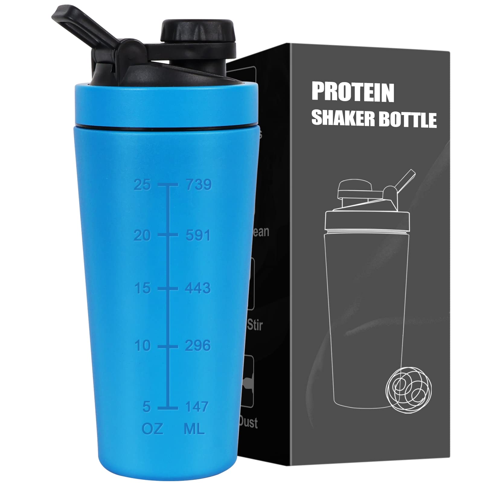 RAGNAROK Stainless Steel Shaker Protein 750ml Metal Shaker Drinking Bottle with Ball Sport Fitness