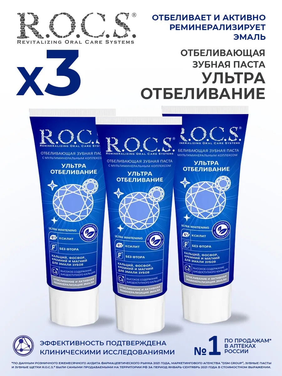 ROCS Зубная паста отбеливающая 3шт по 94гр