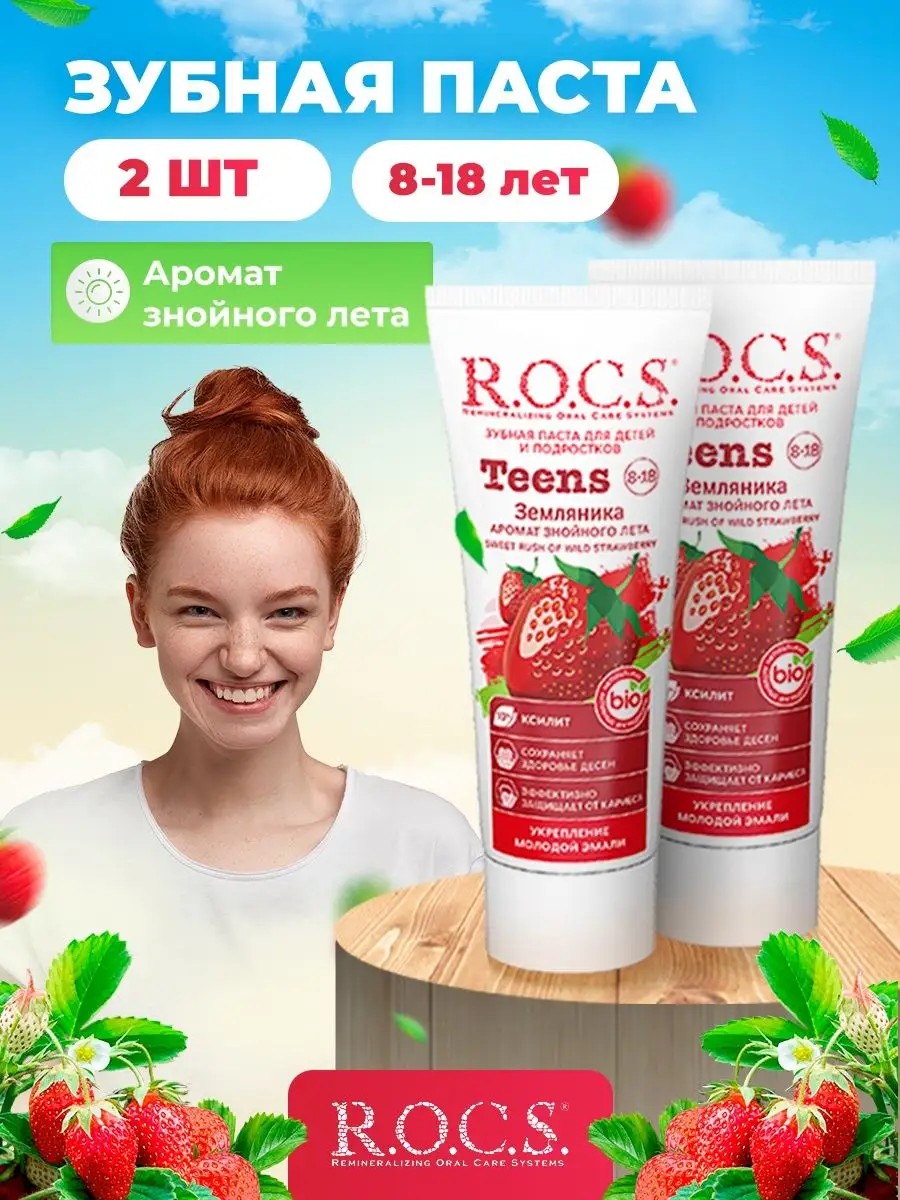 КомплектацияЗубная паста R.O.C.S. Teens Аромат знойного лета Земляника - 2 шт