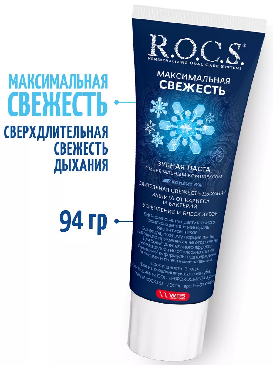 | Комплектация | Зубная паста R.O.C.S. Максимальная свежесть 94 г - 1 шт |