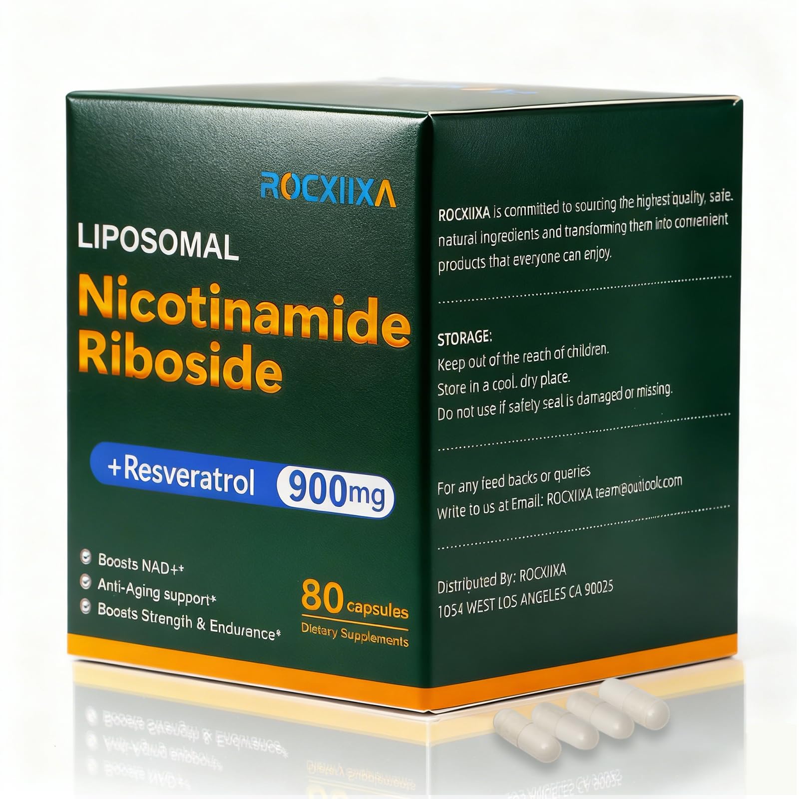 ROCXIIXA NAD+ Supplement - Nicotinamide Riboside 900 Mg Supplement for Men and Women Liposomal Nicotinamide Riboside Resveratrol for Focus Boost - 80 Capsules