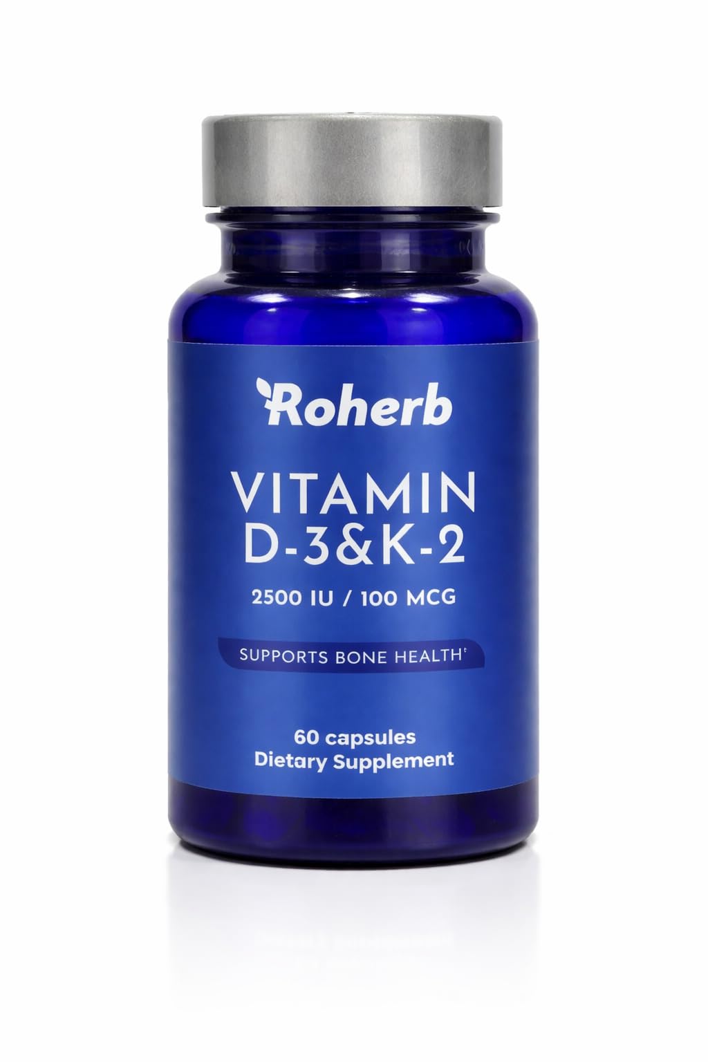 Roherb Vitamin D3 & K2 Capsules 2500 IU Vitamin D3 with 100 mcg Vitamin K2 (MK-7) Halal 60 Capsules