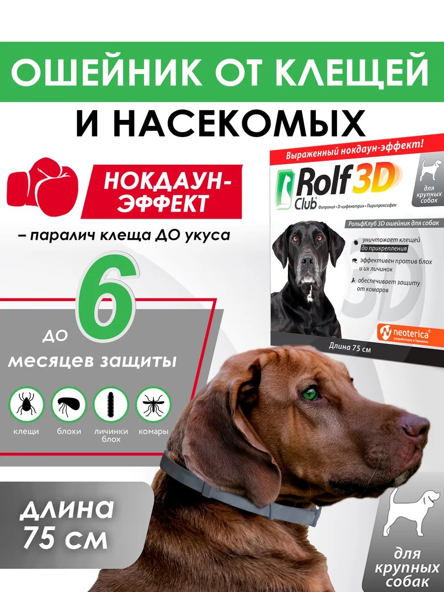 | Полное наименование товара | RolfClub 3D ошейник для крупных собак 75 см от клещей блох комаров R435 |