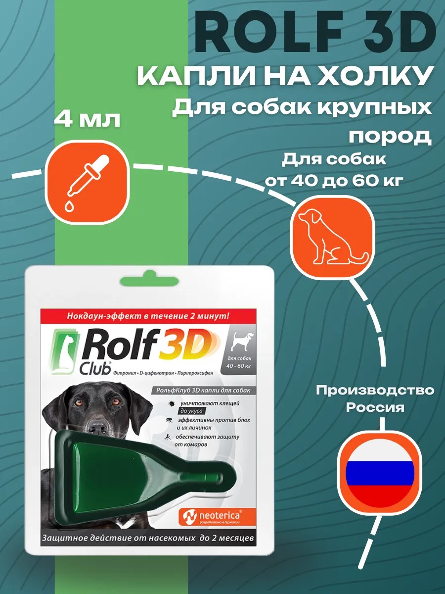 | Full name of product | ROLF CLUB 3D Drops from ticks and fleas for dogs 40-60 kg |