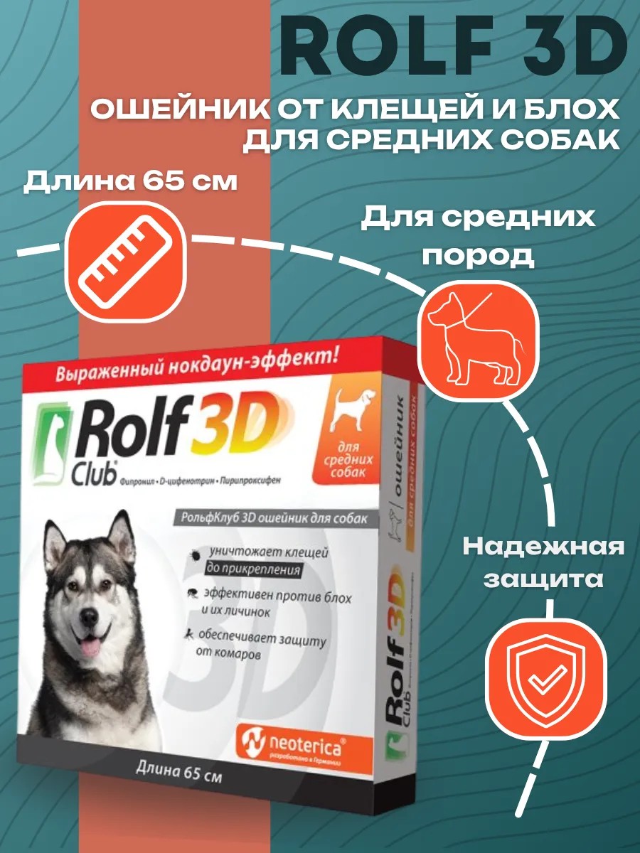 | Полное наименование товара | РОЛЬФ КЛУБ 3D Ошейник от клещей и блох для средних собак |