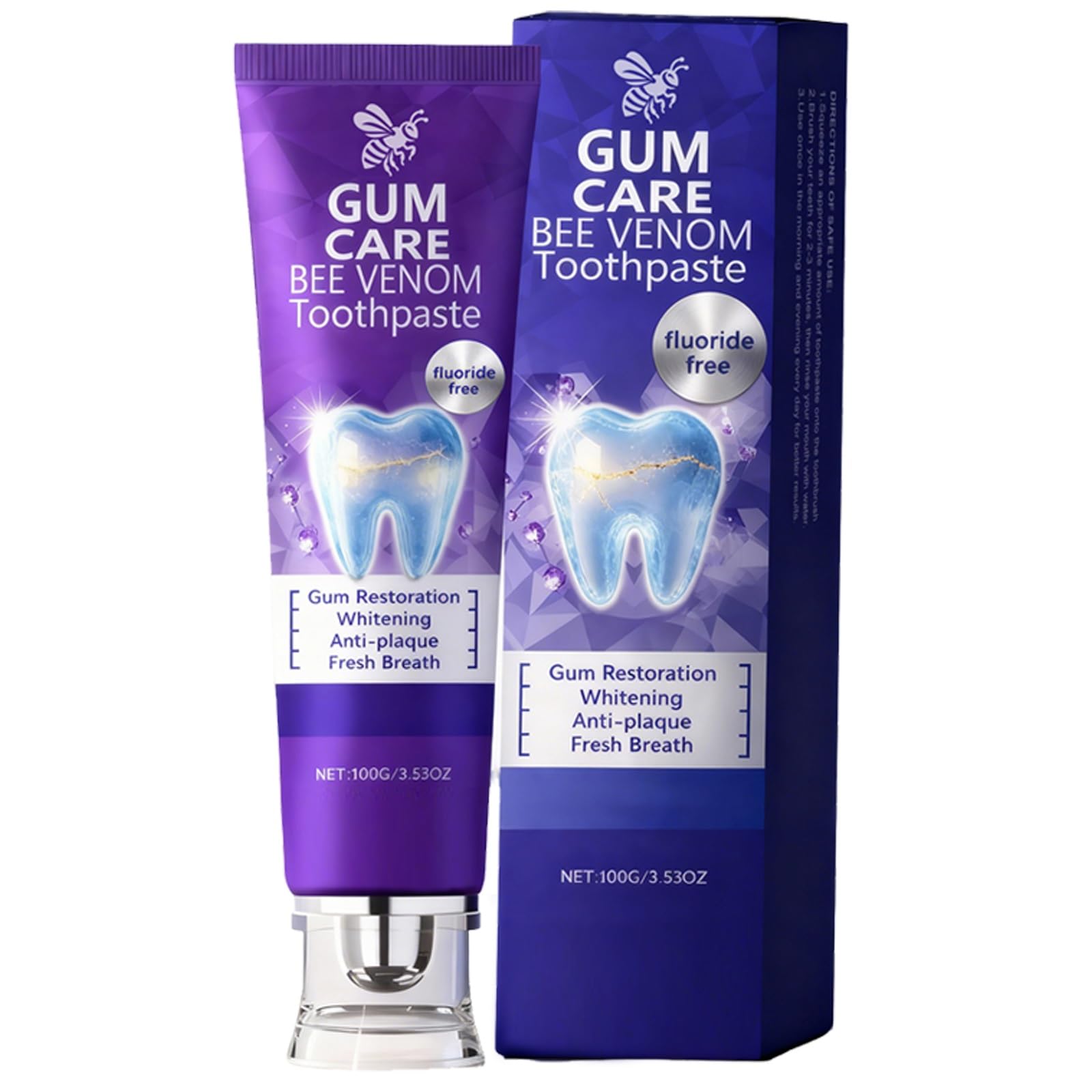 Rolimey Viocore Bee Venom Dental Treatment Toothpaste, Natural Teeth Whitening Toothpaste, Gum Therapy Bee Venom Toothpaste, Teeth Whitening Gel, Anti-Plaque, Frosh Broath for Men and Women Features: Soothes gums and visibly whitens teeth with bee venom and herbs. Deeply cleans stains while brightening for a healthier smile. Fights bad breath for all-day freshness. Gentle and invigorating mint cream for the whole family. Absorbs easily and cleans deeply without damaging enamel. Specifications: Name: Teeth Whitening Toothpaste Weight: 100g Package Contains: 1 2 Bee Venom Toothpaste Safety Warning: For external use only. Do not swallow. Keep out of reach of children. Stop use and consult a dentist if irritation occurs.Easy to use: Simply apply this teeth-whitening gel toothpaste and brush as usual. The gentle bee venom formula is easily absorbed without damaging enamel, for a deep clean with ease. Gentle Care Designed for everyday family use. Its silky-cream texture is gentle yet effective, combined with an invigorating mint flavor that transforms brushing into a refreshing ritual. Fresh Breath Oral Health The cleansing formula fights bad breath to keep your breath fresh, making it the perfect everyday choice. Deep Clean: Our advanced bee venom formula deep cleans to remove stains and residue, while the whitening gel helps teeth shine and ensures long-lasting comfort for a healthier smile. Bee Venom Toothpaste Infused with bee venom and natural herbs, this formula gently soothes sensitive gums while working to visibly whiten teeth, revealing a naturally brighter smile with continued use.Rolimey Viocore Bee Venom Dentifrice de traitement dentaire, dentifrices naturels for blanchir les dents, dentifrice for thérapie des gencives, gel de blanchiment des dents, anti-plaque(1 PCS)DESCRIPTION DU PRODUIT Rolimey Viocore Bee Venom dentifrice de traitement dentaire, dentifrices naturels blanchissant les dents, Gum Therapy Bee Venom Dentifrices, gel de blanchiment des dents, Anti-Plaque, Frosh Broath for hommes femmes Caractéristiques: Apaise les gencives et blanchit visiblement les dents grâce au venin d'abeille et aux herbes. Nettoie les taches en profondeur tout en éclaircissant for un sourire plus sain. Combat la mauvaise haleine for une fraîcheur toute la journée. Crème à la menthe douce et vivifiante for toute la famille. S'absorbe facilement et nettoie en profondeur sans endommager l'émail. Caractéristiques: Nom: dentifrice blanchissant les dents Poids : 100g Le paquet contient : 1 2 dentifrice au venin d'abeille Avertissement de sécurité Pour usage externe uniquement. Ne pas avaler. Tenir hors de portée des enfants. Cesser l'utilisation et consulter un dentiste en cas d'irritation.Facile à utiliser : appliquez simplement ce dentifrice gel blanchissant les dents et cette brosse comme d'habitude. La formule douce au venin d'abeille est facilement absorbée sans endommager l'émail, for un nettoyage en profondeur en toute simplicité. Soins doux Conçu for un usage familial quotidien. Sa texture crème soyeuse est douce mais efficace, associée à une saveur de menthe revigorante qui transforme le brossage en un rituel rafraîchissant. haleine fraîche et santé bucco-dentaire la formule nettoyante combat la mauvaise haleine for garder votre haleine fraîche, ce qui en fait le choix quotidien parfait. Nettoyage en profondeur : notre formule avancée de venin d'abeille nettoie en profondeur for éliminer les taches et les résidus, tandis que le gel blanchissant aide les dents à briller et assure un confort durable for un sourire plus sain. Dentifrice au venin d'abeille Infusée de venin d'abeille et d'herbes naturelles, cette formule apaise en douceur les gencives sensibles tout en travaillant à blanchir visiblement les dents, révélant un sourire naturellement plus éclatant avec une utilisation continue.