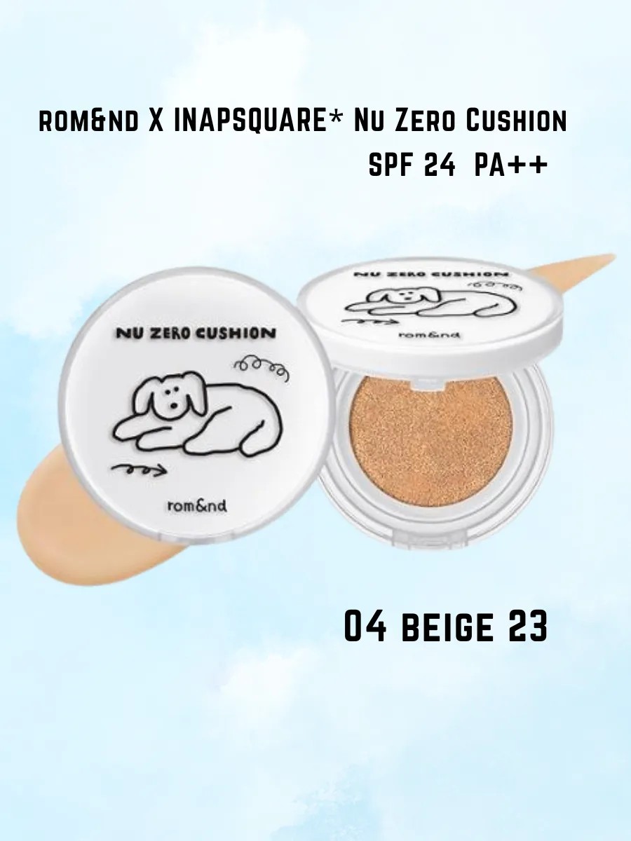 The long-lasting Rom&Nd Nu Zero Cushion SPF24 PA++ foundation covers enlarged pores, conceals redness and other imperfections, evens out skin tone, and creates a smooth, natural finish.