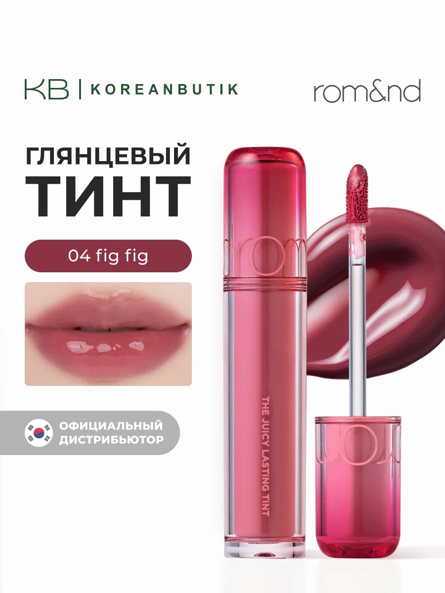 Тинт для губ Juicy Lasting Tint в оттенке 04 Figfig ROM&ND придаст губам сочный и яркий цвет с глянцевым финишем, который сохраняется на протяжении всего дня. Этот продукт уникально сочетает в себе свойства блеска и тинта, что позволяет достичь максимального эффекта насыщенности цвета без ощущения липкости.