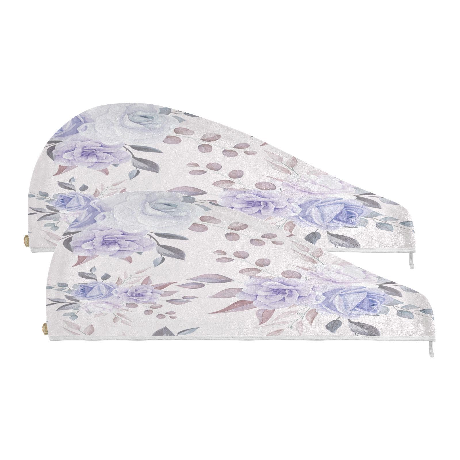 Romantic Flower Dry Hair Cap 2 Piece Quick Drying Towel Set with Button Headband Super Absorbent Soft & Comfortable