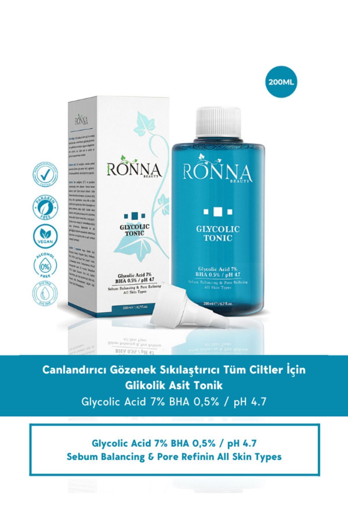Ronna Beauty Pore Tightening Glycolic Tonic 200 Ml Bha 0.5% Ph 4.7