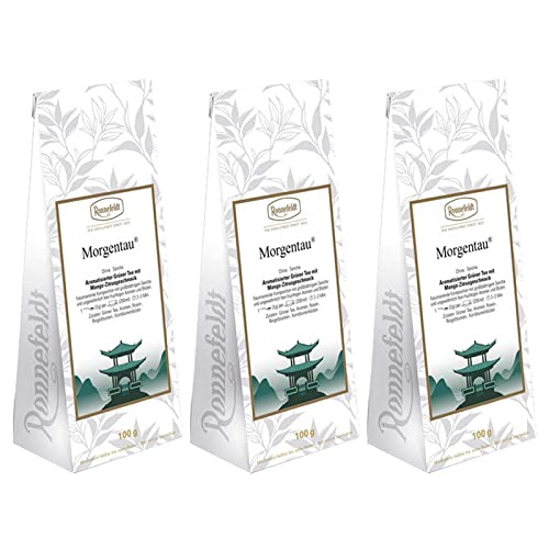 An Indian supplier gave the impetus for the development of this type of tea when he sent the then Tea Button Friedrich Rapp a box of fresh, tasty mangoes. The popular fruit was still relatively exotic in Germany at the time. Tested by Friedrich Rapp in multi-stage test rounds, the final product contributed significantly to the use of green tea in Germany. Today, the original formula is a well-protected secret and is only passed on among tea keys. The morning dew has been copied many times, but it remains unique to this day. INGREDIENTS Green tea, aroma, sunflower, roses, cornflowers INSTRUCTIONS FOR USE Steeping time: 2-3 minutes SAFETY WARNING May contain allergens. Exercise caution in case of known allergy to mango or citrus fruits. See moreRonnefeldt Morgentau , groene thee m. mango-citrussmaak, 300 g (3 x 100 g) De impuls voor de ontwikkeling van deze theesoort gaf een Indiase leverancier toen hij de toenmalige Tea knop Friedrich Rapp een kist van frisse, smakende mango's stuurde. De populaire vrucht was toen in Duitsland nog relatief exotisch. Door Friedrich Rapp in meertraps testronden getest, droeg het eindproduct aanzienlijk bij aan het gebruik van groene thee in Duitsland. Vandaag nog is de originele formule een goed beschermd geheim en wordt alleen onder theetoetsen doorgegeven. De ochtenddauw is vaak gekopieerd, maar hij blijft tot op heden uniek. INGREDIËNTEN Groene thee, aroma, zonnebloem, rozen, korenbloemen GEBRUIKSAANWIJZING Trektijd: 2-3 minuten VEILIGHEIDSWAARSCHUWING Kan allergenen bevatten. Voorzichtigheid in acht nemen bij bekende allergie voor mango of citrusvruchten. Meer bekijken