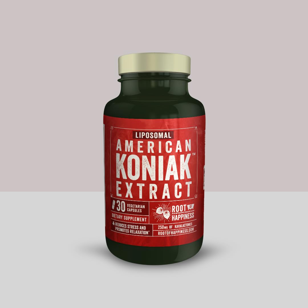 Root of Happiness Liposomal American Koniak Kava Extract Capsules - Premium 250mg Kavalactones 30ct Bottle