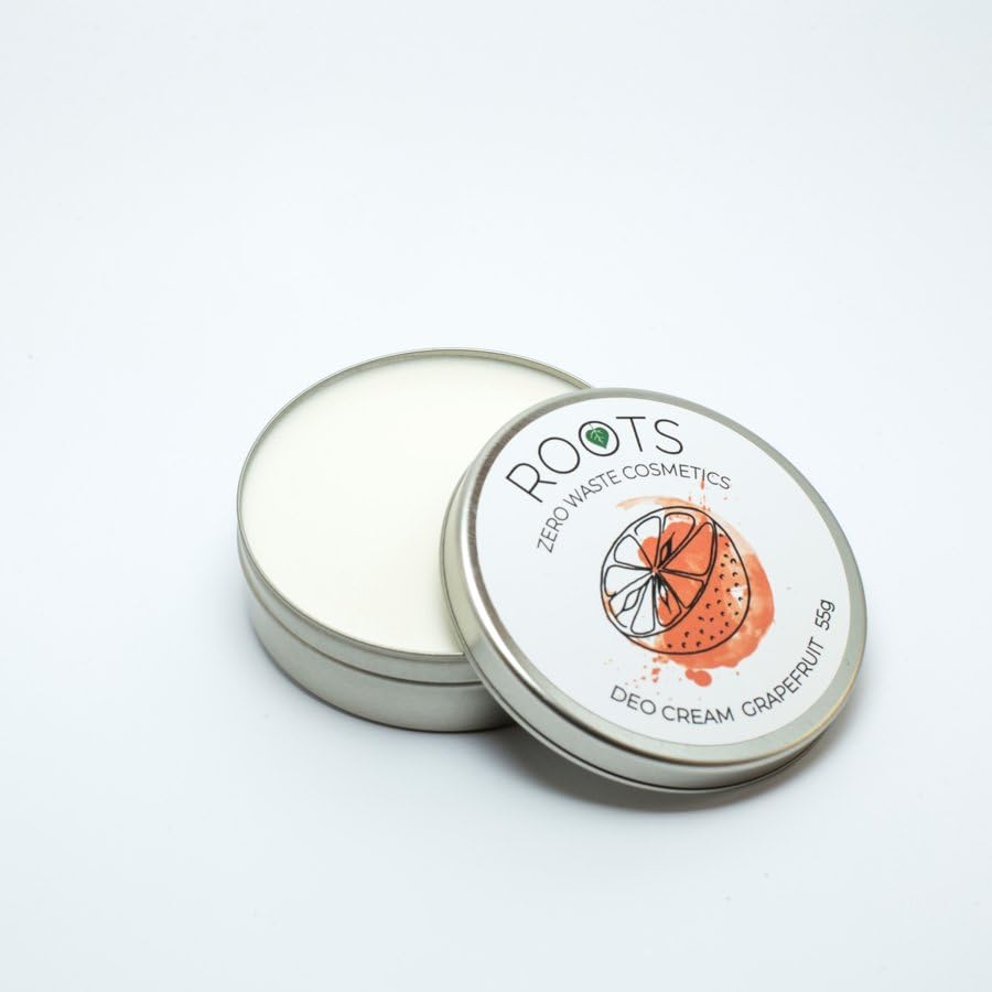 The Grapefruit 55g Cream Deodorant is suitable for all skin types and helps you stay fresh all day. The blend of corn, shea butter, baking soda, coconut oil, and tea tree oil absorbs moisture to prevent bacterial growth, detoxifies, neutralizes, and eliminates bath odors. Ingredients: Zea corn oil, butyrospermum parkii butter, sodium bicarbonate, cocos nucifera oil, CI 77947, parfum (fragrance), Melaleuca Alternifolia leaf oil, limonene, linalool, geraniol, citronellol, citral. Naturally derived ingredients: 95.70 . Paraben-free. Alcohol-free. Aluminum-free. Directions: Apply a small amount daily to the arm and massage until absorbed. Storage: Store in the original container in a dark place at a temperature between 5 C and 25 C. Best before: 12 months from the date of manufactureCrème déodorante naturelle Pamplemousse ROOTS Zero Waste CosmeticsDESCRIPTION DU PRODUIT Le déodorant crème déodorant Pamplefruit 55 g est adapté à tous les types de peau et vous aide à rester frais toute la journée. Le mélange de maïs, de beurre de karité, de soda, d'huile de noix de coco et d'huile d'arbre à thé absorbe l'humidité pour empêcher le développement des bactéries, des détox, des neutralisations et élimine les odeurs de bain. Ingrédients : huile de maïs Zea, beurre de butyrospermum parkii, bicarbonate de sodium, huile de noix de coco nucifera, CI 77947, parfum, huile de feuille Melaleuca Alternifolia, limonène, linalool, géraniol, citronellol, citral. Ingrédients d'origine naturelle : 95,70 . Sans paraben. Sans alcool. Sans aluminium. Utilisation : appliquez une petite quantité quotidienne sur le bras et massez jusqu'à ce que la peau soit absorbée par la peau. Stockage : stockez dans le récipient d'origine dans un endroit sombre à une température de 5 C ÷ 25 C. Meilleur avant : 12 mois de fabrication