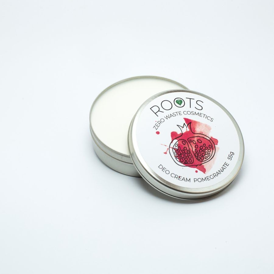 POMEGRANATE 55g Cream Deodorant is suitable for all skin types and helps you stay fresh all day. The blend of corn, shea butter, baking soda, coconut oil, and tea tree oil absorbs moisture, prevents bacterial growth, detoxifies, neutralizes, and eliminates bath odors. Ingredients: Zea corn oil, butyrospermum parkii butter, sodium bicarbonate, cocos nucifera oil, CI 77947, parfum (fragrance), Melaleuca Alternifolia leaf oil, lime. Naturally derived ingredients: 95.70 . Paraben-free. Alcohol-free. Aluminum-free. Directions: Apply a small amount daily to the arm and massage until absorbed. Storage: Store in the original container in a dark place at a temperature between 5 C and 25 C.Crème déodorante naturelle POMEGRANATE ROOTS Zero Waste CosmeticsDESCRIPTION DU PRODUIT Le déodorant crème POMEGRANATE 55 g convient à tous les types de peau et vous aide à rester frais toute la journée. Le mélange de maïs, de beurre de karité, de soda, d'huile de noix de coco et d'huile d'arbre à thé absorbent l'humidité, prévient le développement des bactéries, des détox, des neutralisations et élimine les odeurs de bain. Ingrédients : huile de maïs Zea, beurre de butyrospermum parkii, bicarbonate de sodium, huile de noix de coco nucifera, CI 77947, parfum, huile de feuille Melaleuca Alternifolia, citron vert. Ingrédients d'origine naturelle : 95,70 . Sans paraben. Sans alcool. Sans aluminium. Utilisation : appliquez une petite quantité quotidienne sur le bras et massez jusqu'à ce que la peau soit absorbée par la peau. Stockage : stockez dans le récipient d'origine dans un endroit sombre à une température de 5 C ÷ 25 C.