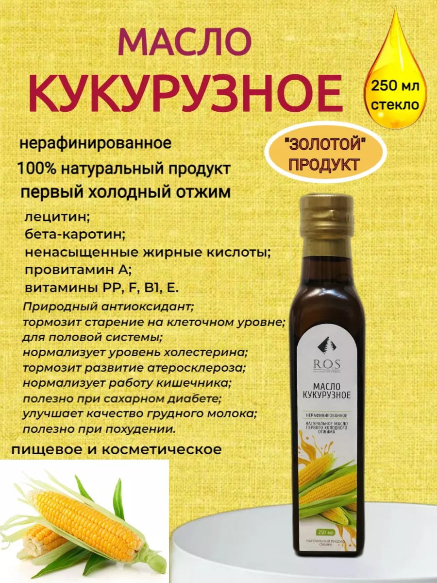 100% натуральное, нерафинированное, первого холодного отжима. Это натуральный элитный продукт премиум-класса, изготовленный из зародышей кукурузных зерен, выращенных с любовью для вас и вашего здоровья.