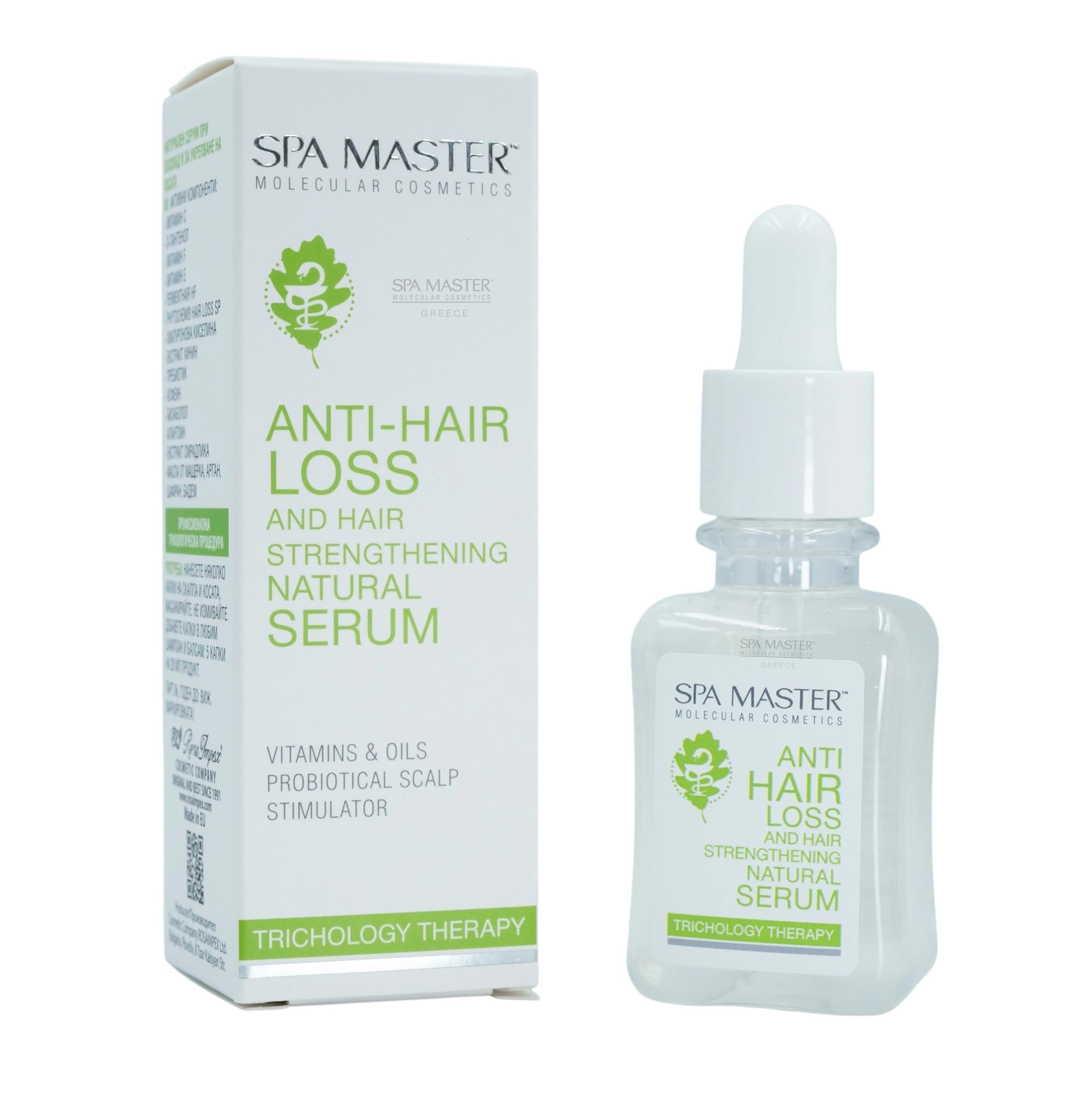 Active substances: Vitamin C, D-panthenol, vitamin F, vitamin E, fermentary hair HF (urtica dioica Leaf Extract, Glycyrrhiza GLABRA ROOT EXTRACT, QUERCUS ROBUR BARK EXTRACT, SACCHAROMYCES FERMENT LYSATE FILTRATE) - HYTOCHEM HAIR OSS SP(BI). OTIN, GLYCOPROTEINS, tocopheryl acetate, pyridoxine hcl, panthenol, zinc chloride, acetyl cysteine, glutamines, methionine, Saccharomyces lysate) hyaluronic acid - quinine extract - prebiotic - caffeine bisabolol -alantoin extract from SCUMPIA -Thy. Miaan oil - Arc gan oil - saffron oil - almond oil. Method of use: apply several drops to the scalp and hair, massage in. Do not rinse. Drops can be added to your favorite shampoo and rinse. SAFETY WARNING Cosmetic product, for external use only. Keep out of the reach of children.Use: apply several drops to the scalp and hair, massage in. Do not rinse. Drops can be added to your favorite shampoo and rinse. Active substances: Vitamin C, D-panthenol, vitamin F, vitamin E, fermentary hair HF (urtica dioica Leaf Extract, Glycyrrhiza GLABRA ROOT EXTRACT, QUERCUS ROBUR BARK EXTRACT, SACCHAROMYCES FERMENT LYSATE FILTRATE) - HYTOCHEM HAIR OSS SP(BI). OTIN, GLYCOPROTEINS, tocopheryl acetate, pyridoxine hcl, panthenol, zinc chloride, acetyl cysteine, glutamines, methionine, Saccharomyces lysate) hyaluronic acid - quinine extract - prebiotic - caffeine bisabolol -alantoin extract from SCUMPIA -Thy. Miaan oil - Arc gan oil, saffron oil, almond oil.Spa Master Trichological Therapy Natural Strength Serum tegen haaruitval, 45 ml Werkzame stoffen: Vitamine C, D-panthenol, vitamine F, vitamine E, fermentair haar HF (urtica dioica Leaf Extract, Glycyrrhiza GLABRA ROOT EXTRACT, QUERCUS ROBUR BARK EXTRACT, SACCHAROMYCES FERMENT LYSAAT FILTRATE) - HYTOCHEM HAIR OSS SP(BI). OTIN, GLYCOPROTEINS, tocoferyl acetaat, pyridoxine hcl, panthenol, zinkchloride, acetyl cysteïne, glutaminen, methionine, Saccharomyces lysate) hyaluronzuur - kinine-extract - prebioticum - cafeïne bisabolol -alantoïne extract van SCUMPIA -Thy. Miaanolie - Arc ganolie - saffraanolie - amandelolie. Gebruiksmethode: meerdere druppels op de hoofdhuid en het haar aanbrengen, inmasseren. Niet uitspoelen. Druppels kunnen aan je favoriete shampoo en -spoeling worden toegevoegd. VEILIGHEIDSWAARSCHUWING Cosmetische product, alleen voor uitwendig gebruik. Buiten het bereik van kinderen bewaren.Gebruik: meerdere druppels op de hoofdhuid en het haar aanbrengen, inmasseren. Niet uitspoelen. Druppels kunnen aan je favoriete shampoo en -spoeling worden toegevoegd. Werkzame stoffen: Vitamine C, D-panthenol, vitamine F, vitamine E, fermentair haar HF (urtica dioica Leaf Extract, Glycyrrhiza GLABRA ROOT EXTRACT, QUERCUS ROBUR BARK EXTRACT, SACCHAROMYCES FERMENT LYSAAT FILTRATE) - HYTOCHEM HAIR OSS SP(BI). OTIN, GLYCOPROTEINS, tocoferyl acetaat, pyridoxine hcl, panthenol, zinkchloride, acetyl cysteïne, glutaminen, methionine, Saccharomyces lysate) hyaluronzuur - kinine-extract - prebioticum - cafeïne bisabolol -alantoïne extract van SCUMPIA -Thy. Miaanolie - Arc ganolie, saffraanolie, amandelolie.